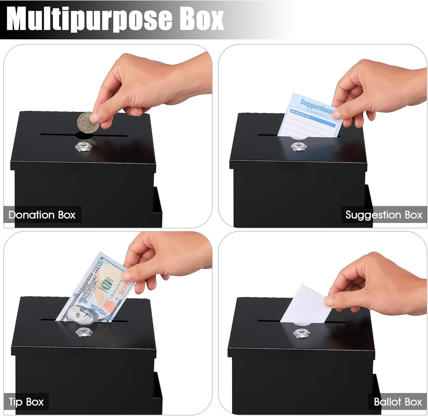 - CONVENIENT SUGGESTION BOX with SLOT: The top of the box features a wide slot to accommodate ballots, mail, money or checks with ease. Great as a suggestion box, ballot box, donation box, tip box, drop box, voting box or prayer box. Size:8.7"Hx5.9"Wx7.1"L