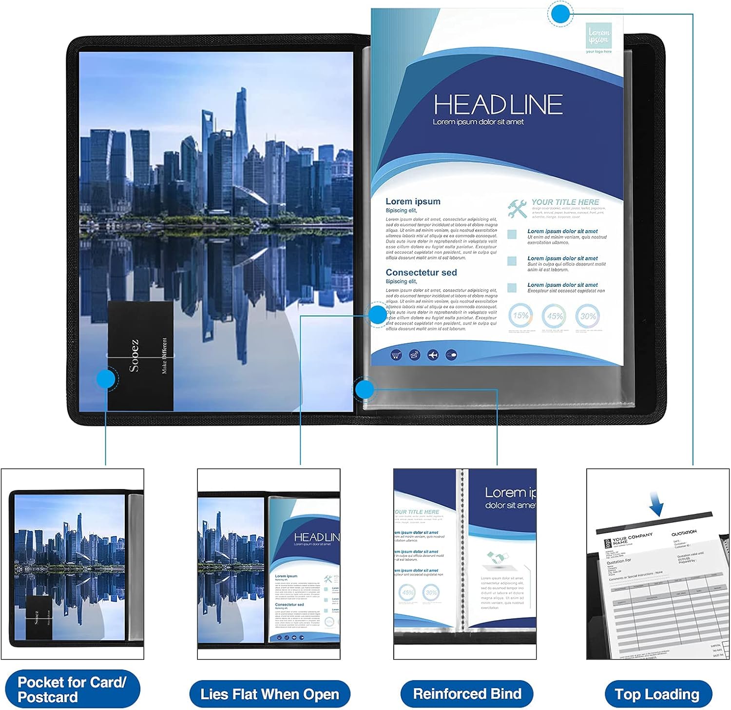 - High Transparency & Lies Flat When Open: Our presentation book with crystal clear PP sheet protectors offers complete transparency for checking through and organizing. Bound sheet protector lies flat when open, free your hands.