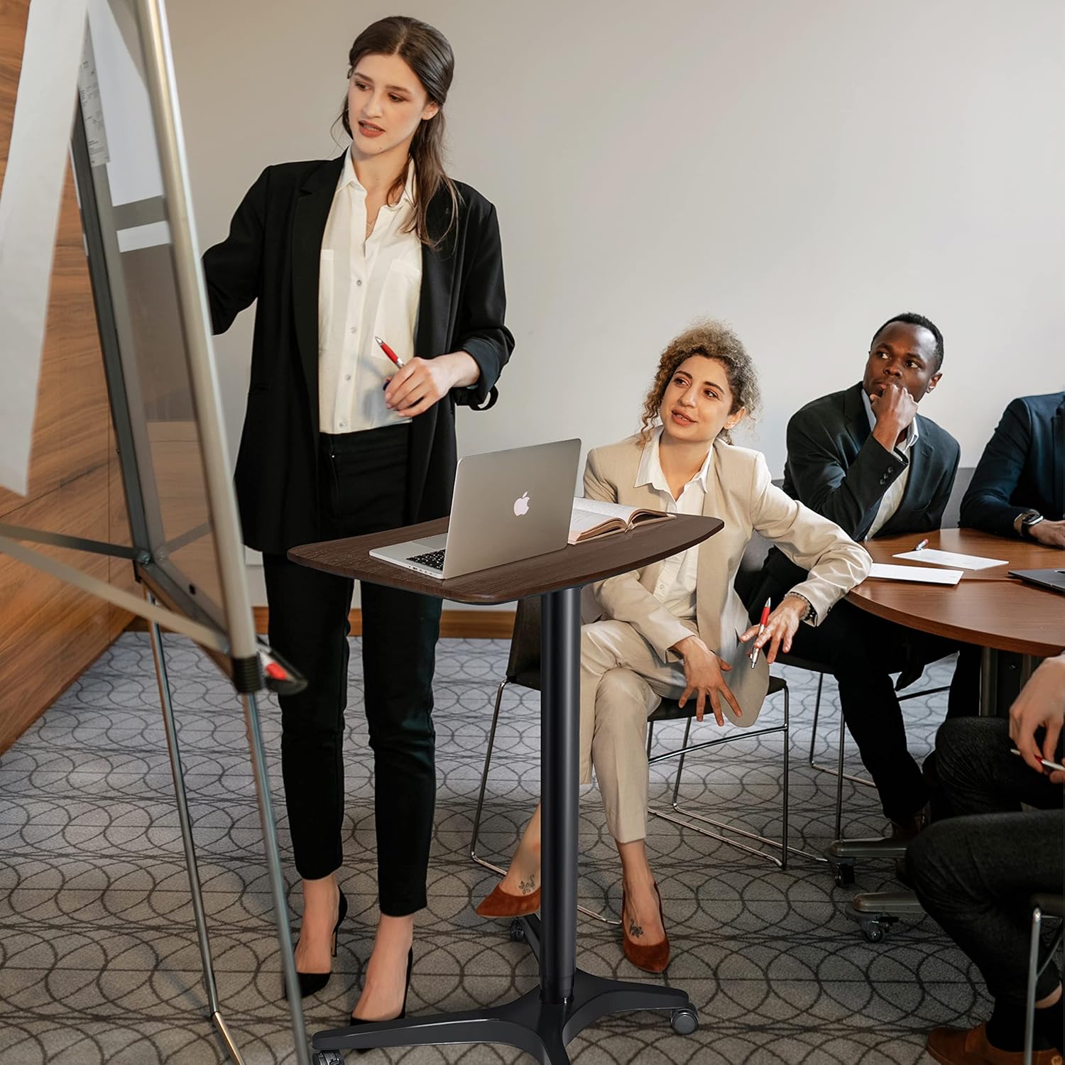 - 【Ergonomic design】: This adjustable standing desk provides you with an ergonomic working space. Choose a comfortable height without suffering. Multifunctional platform: standing or sitting down, different heights can meet different needs. This mobile desk is ideal for offices, schools, meeting rooms, training, trade shows or homes.