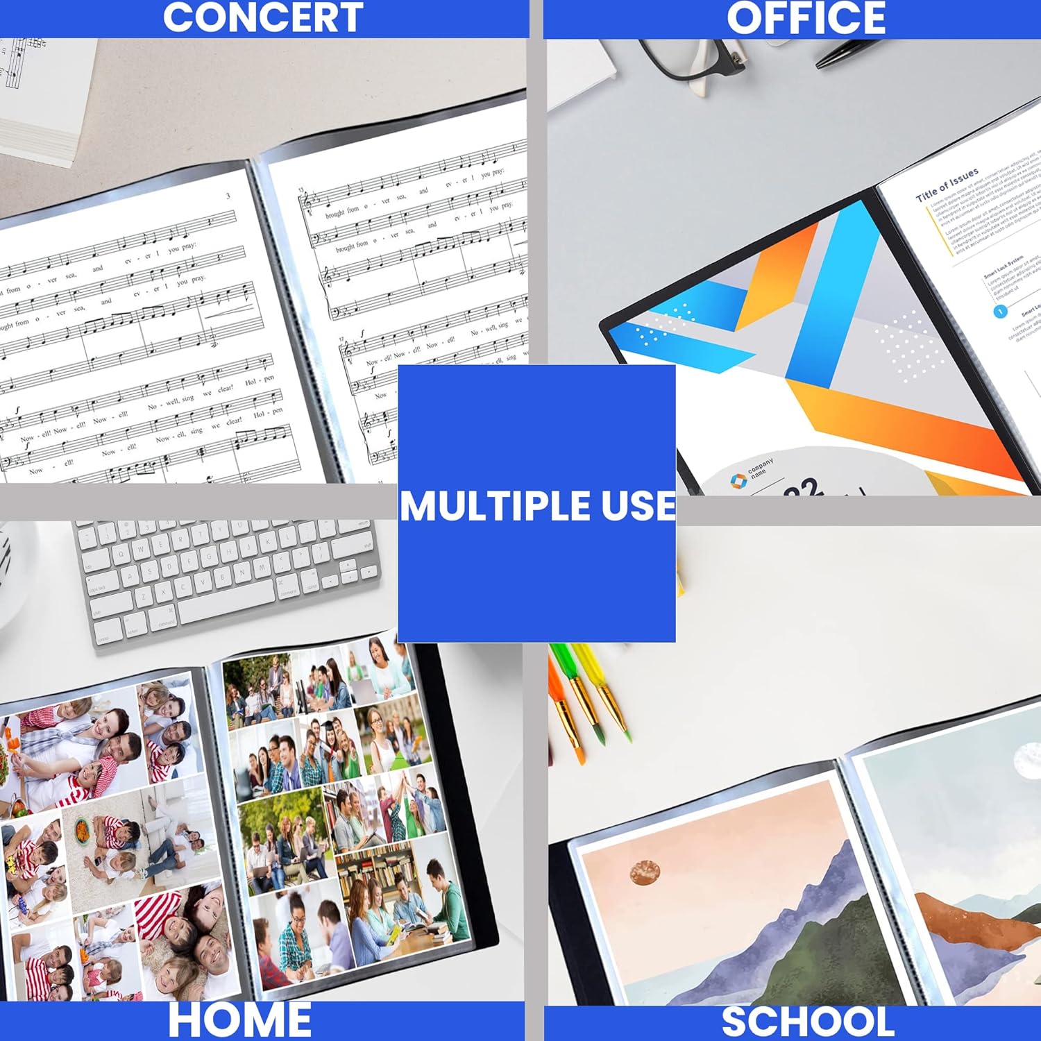 - ๐๐๐ฟ๐ฎ๐ฏ๐น๐ฒ ๐ฎ๐ฐ-๐ฃ๐ผ๐ฐ๐ธ๐ฒ๐ ๐๐ฒ๐๐ถ๐ด๐ป: Features 24 high-clarity bound-in sleeves that securely hold up to 48 sheets, offering organized protection for presentations, certificates, reports, and school or business materials.