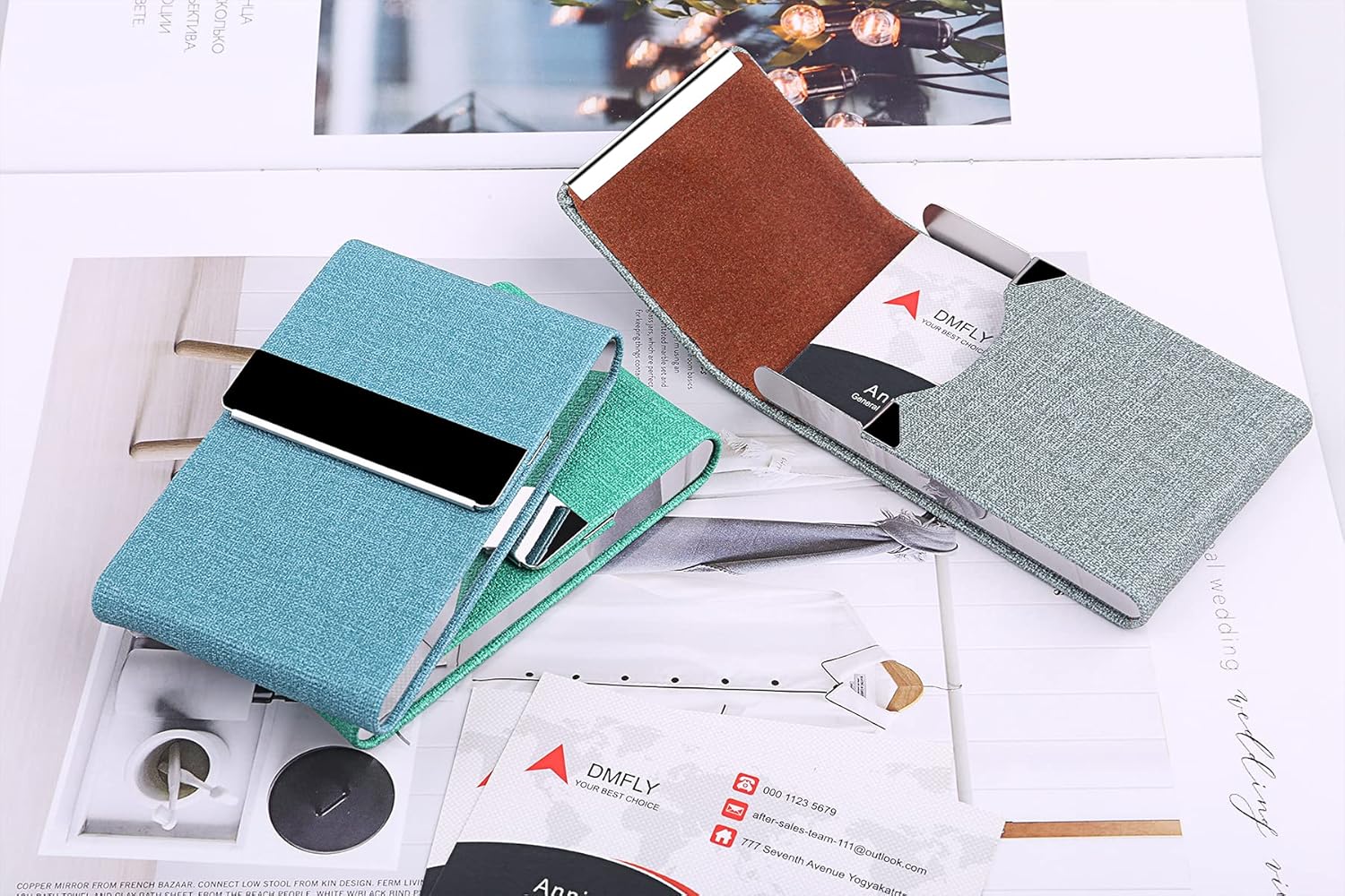 - DMFLY leather business card holder case - Perfect purse size and classy looking, let you feel confident pulling it out of your pocket and handing somebody a card.