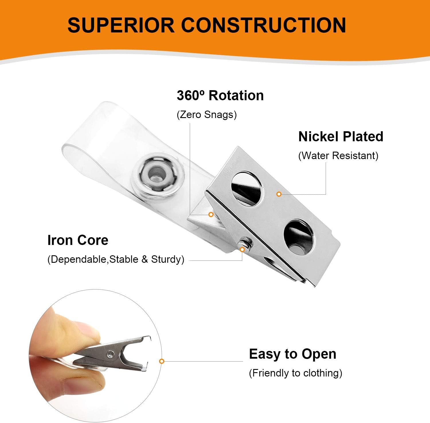Fushing 250Pcs Metal Badge Clips with Clear PVC Straps for ID Cards and Badge Holders