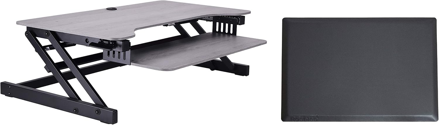 - Standing Desk Converter Bundle includes a standing desk converter (R DADRW) and an anti-fatigue cushion floor mat (R MAFM) in order to provide long standing comfort, reduce joint stress, minimize strain and extend your health benefits while you work.