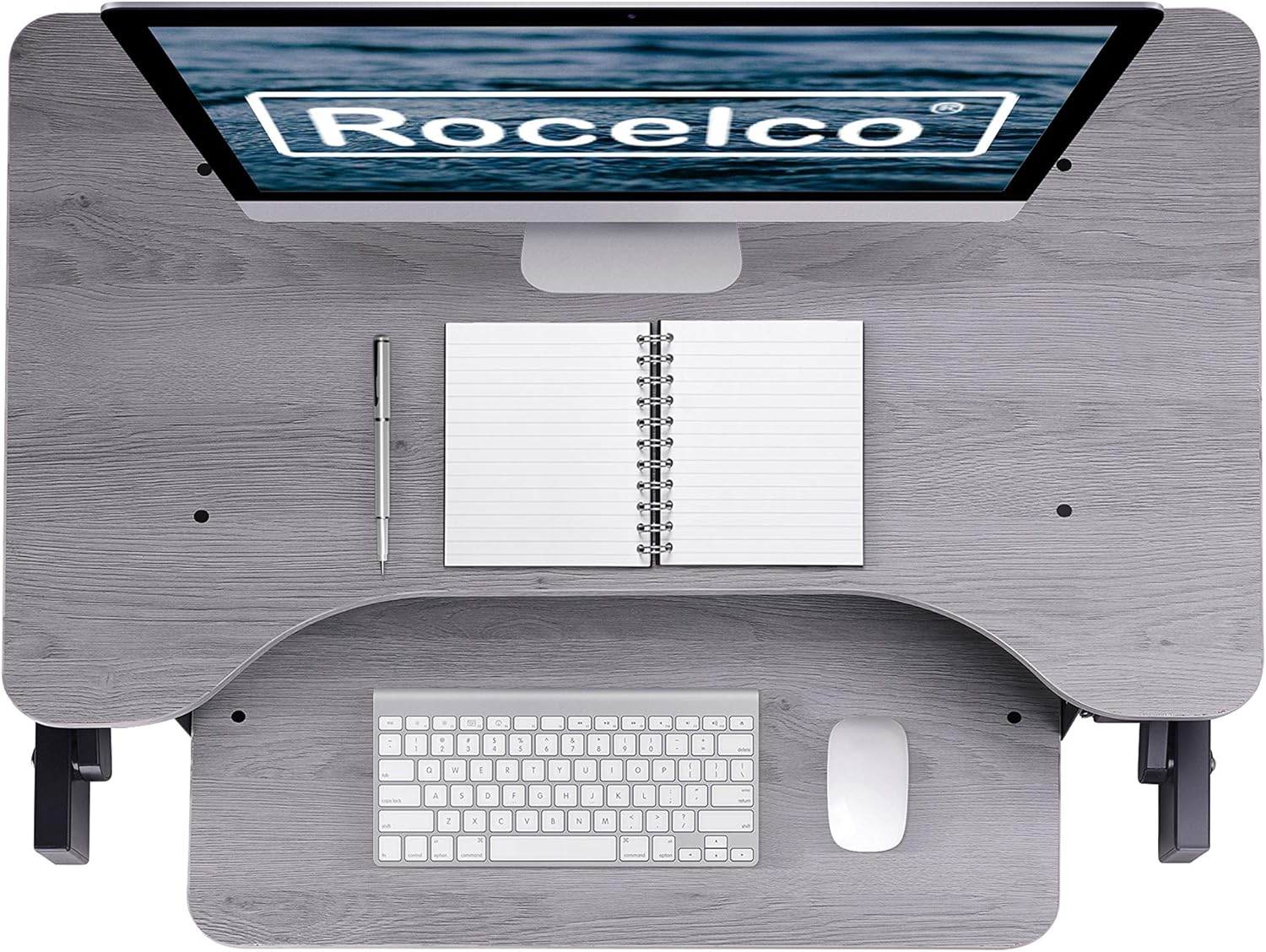 Rocelco 32" Height Adjustable Standing Desk Converter with Anti Fatigue Mat Bundle - Slide Out Retractable Keyboard Tray - Sit Stand Up Dual Monitor Riser - Computer Workstation - Gray (R ADRG-MAFM)