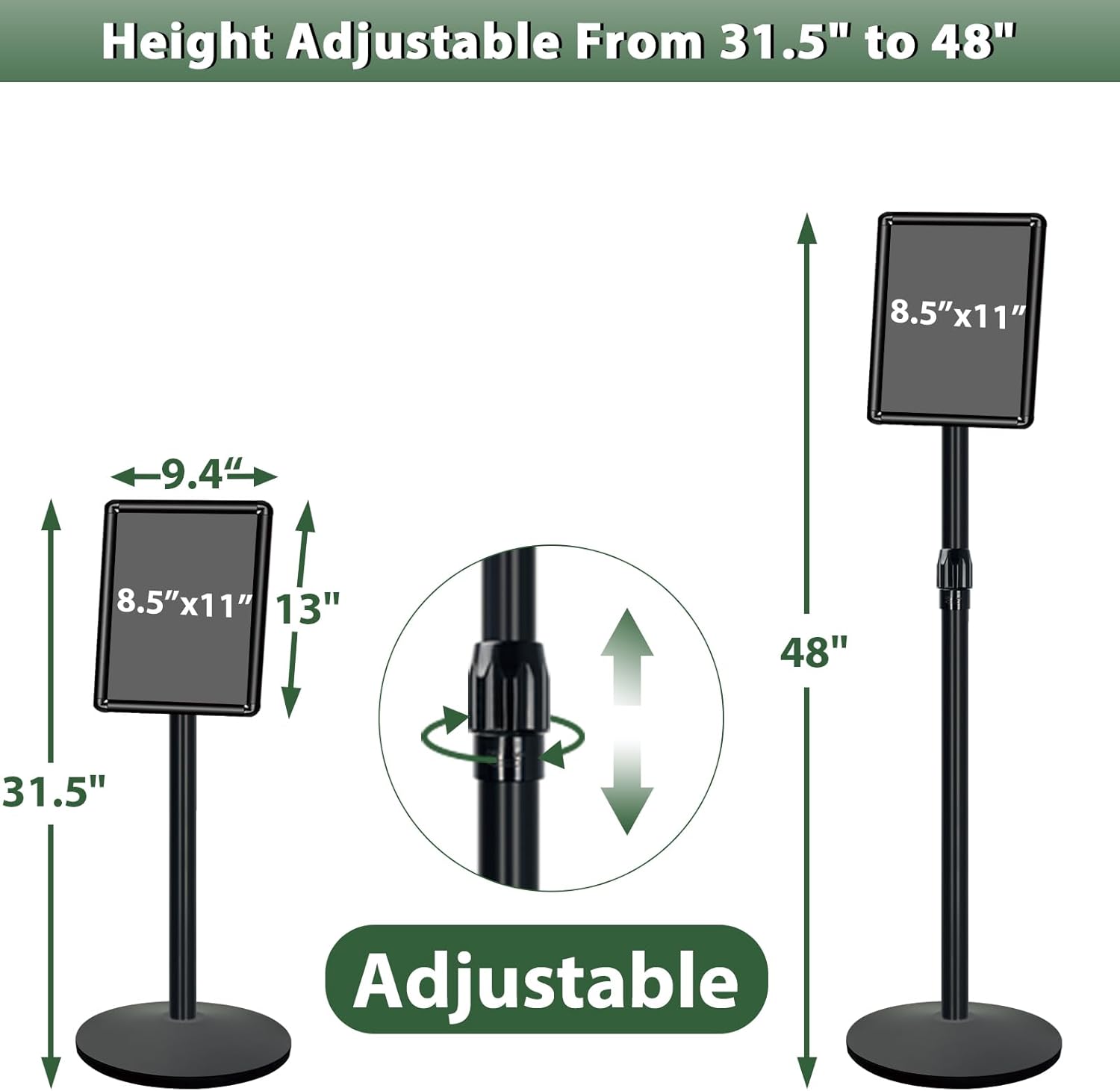 - √ Adjustable: 8.5x11"Poster Stand can be rotated in 360 degrees and allows to be display in both portrait and landscape orientation. The height can be adjusted from 31.5" to 49".