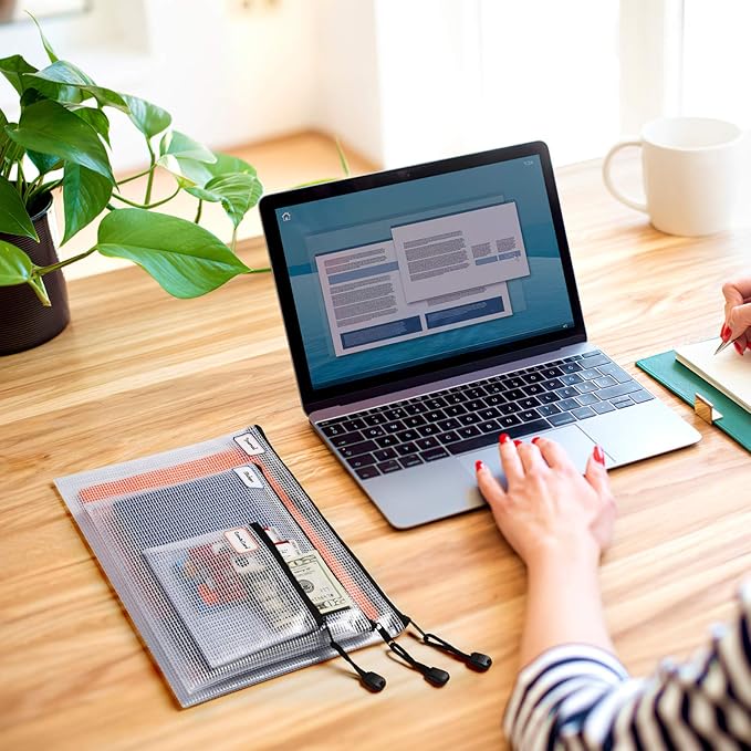 12 Pcs Plastic Mesh Zip File Bags, Waterproof Tear-Resistant Document File Folders, MultiSize Zipper Documents Pouch Organizer Bags for School Office Home Travel Storage(6 Sizes)