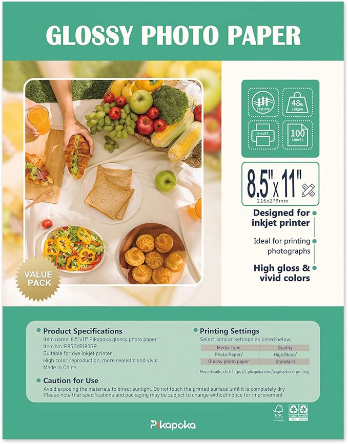 - Pikapoka bulk advanced glossy photo paper 8.5 x 11, 100 Pack, 48 lb