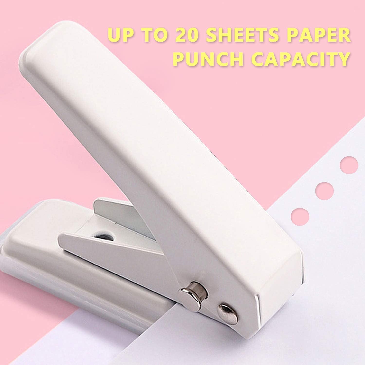 Single Hole Puncher Handheld 1/4 Inches Hole Punch, 20 Sheet Paper Punch Capacity Metal Hole Puncher with Skid-Resistant Base for Paper, Chipboard, Art Project, Ivory White