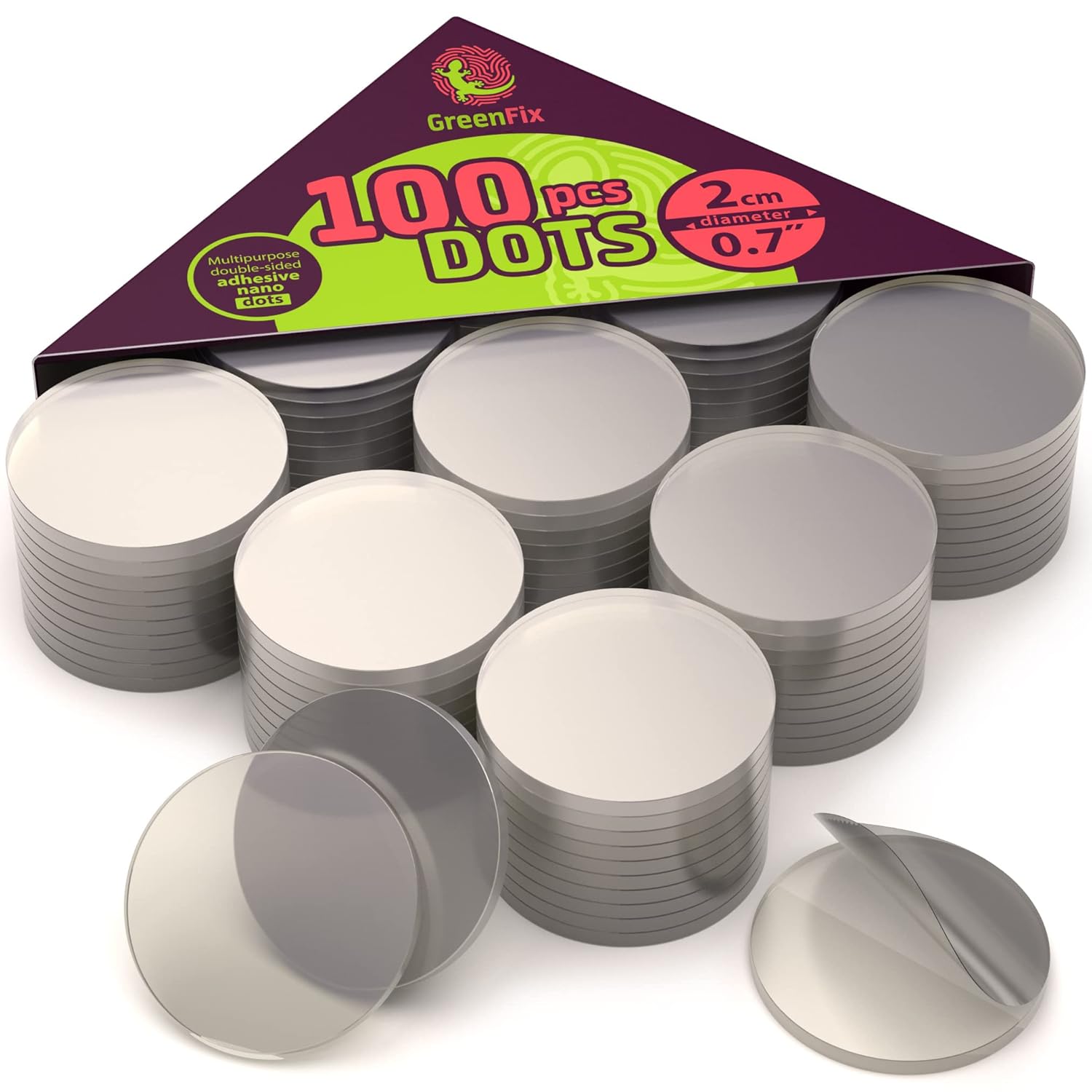 - π¦ PRACTICAL SIZE: adhesive nano dots set includes 100pcs of 2cm (0.7in) in diameter and 1mm (0.04in) thick sticky dots. Convenient size and shape to use as picture hangers, crafting supplies!