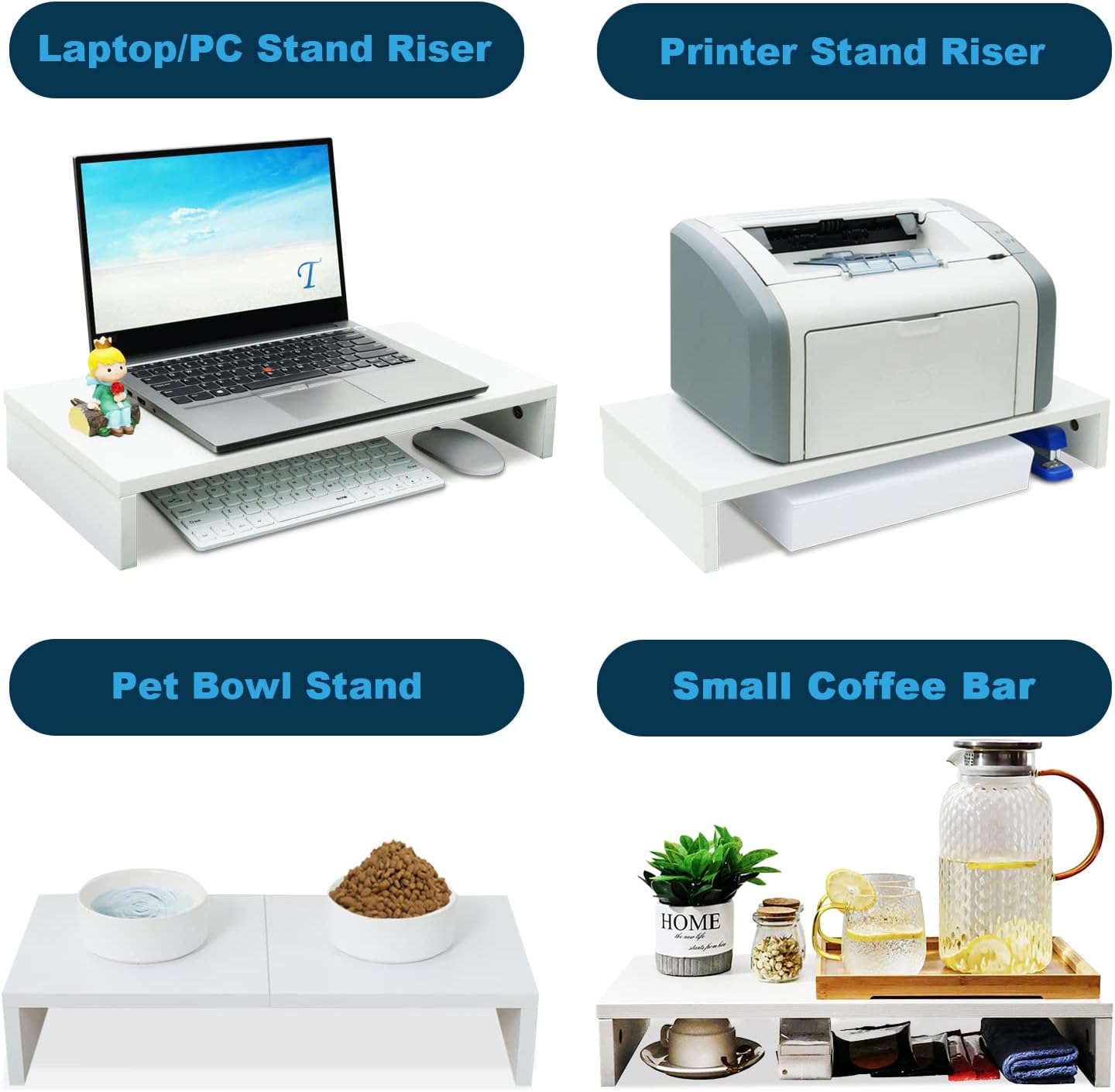 TEAMIX 20 inch White Monitor Stand Riser, Wood Desktop Stand for PC/TV/Laptop/Printer, White Monitor Riser with Storage, Computer Stand with Keyboard Organizer