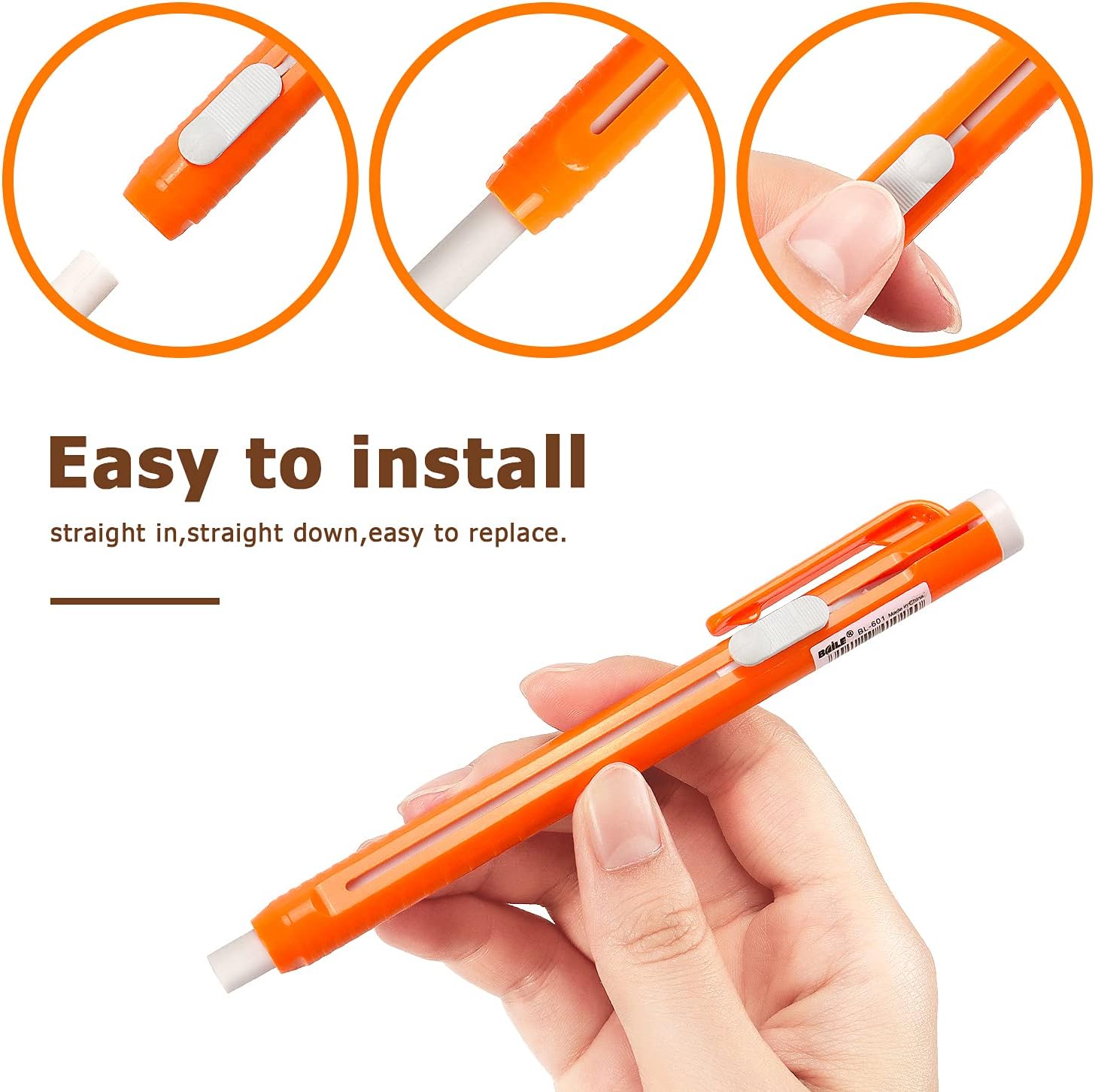 - 4 Pack of latex-free pencil retractable click erasers