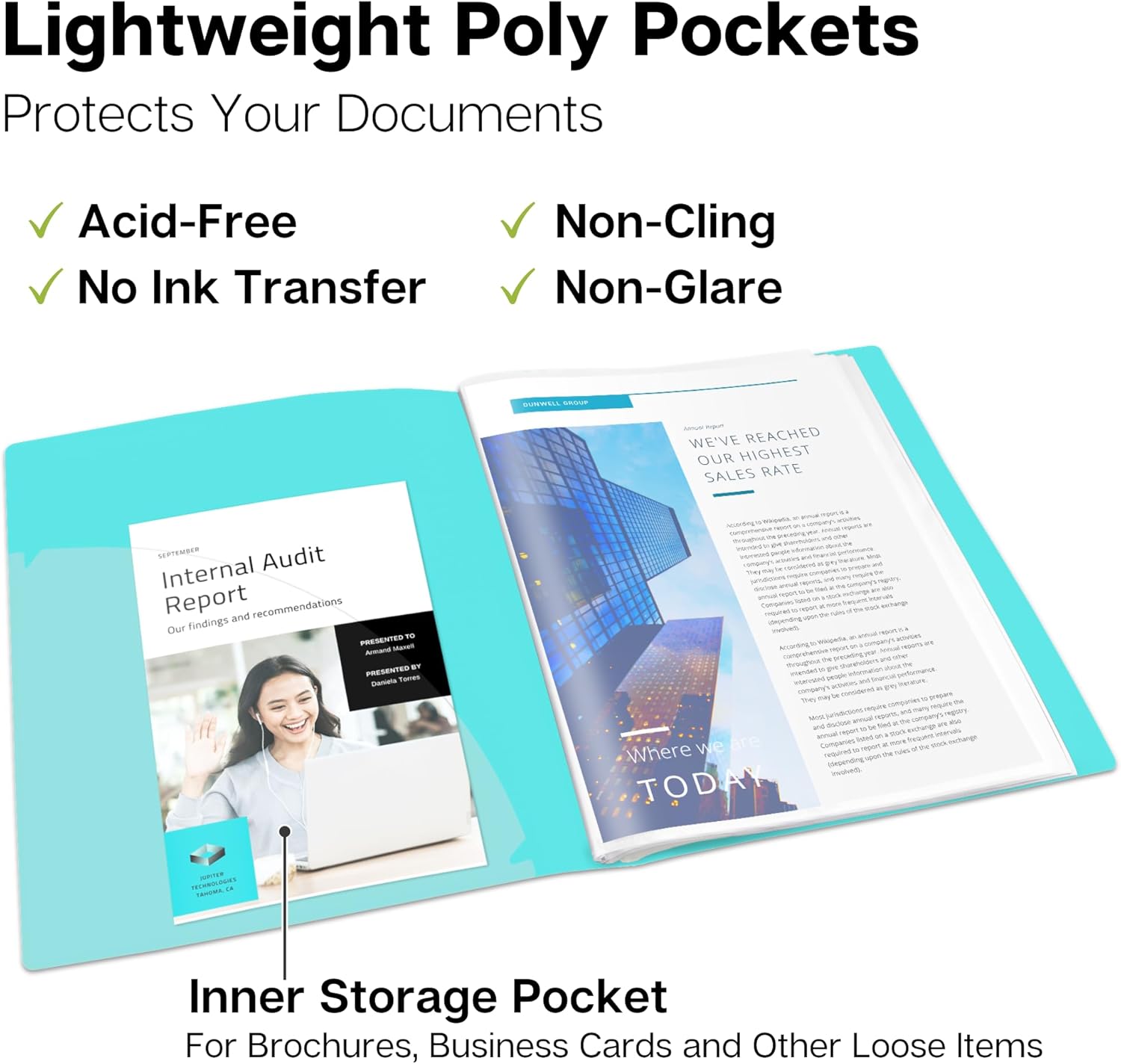 - DURABLE CONSTRUCTION, BUILT TO LAST: Premium plastic covers, reinforced binding resist tearing. Non-glare poly sleeves are dirt and moisture resistant, for a professional appearance every time.