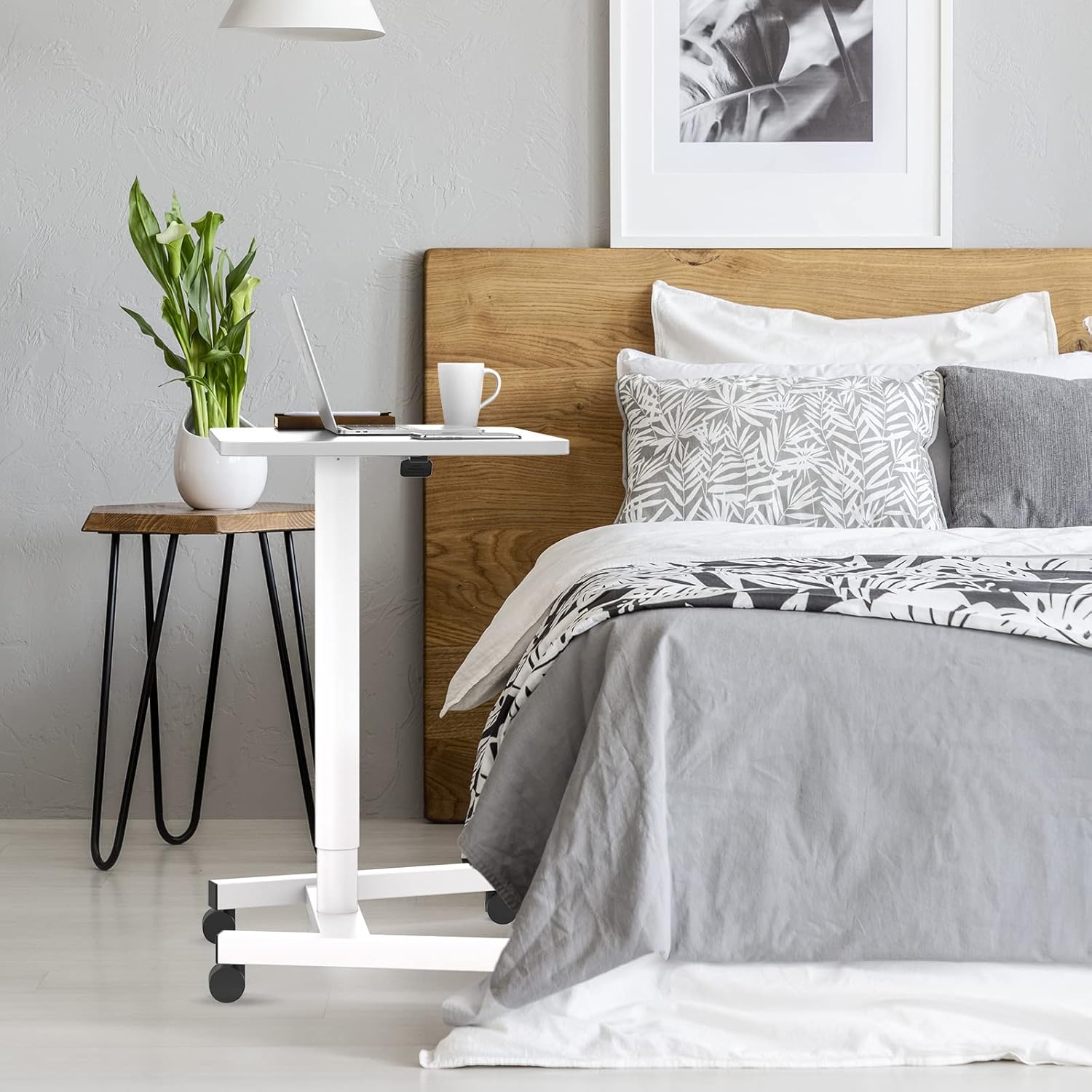 28-Inch Mobile Standing Desk Adjustable Height, Portable Standing Desk with Lockable Wheels, Rolling Table for Home Office Classroom Hospital (Snow-White)