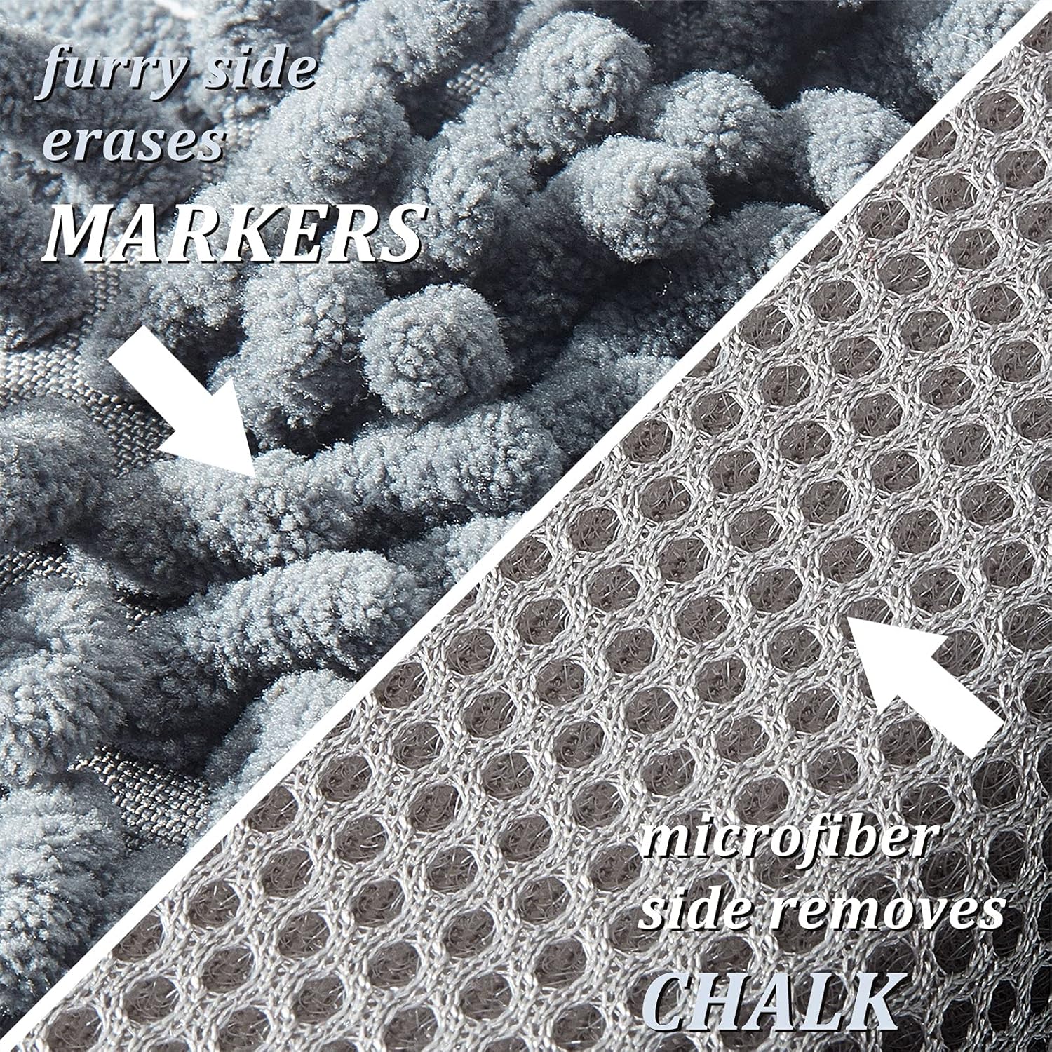 - Effective erasing: the microfiber surface of the dry board eraser easily removes most dry erase ink from any dry erase board, while the furry side erases chalk, no liquid cleaners needed; Dual side design is convenient and effective to erase without damaging the writing surface