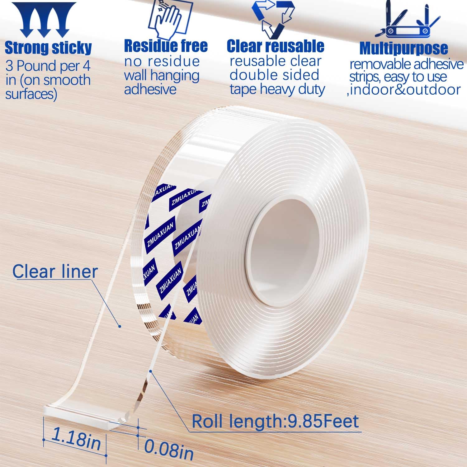 - β REUSABLE&WASHABLEβ Transparent removable mounting tape, easy to tear off from the surface of the object, clear&traceless. no damage to the surface. when the tape needs to be reused, rinse the surface with cold water and let it dry naturally, its stickiness will be restored immediately.