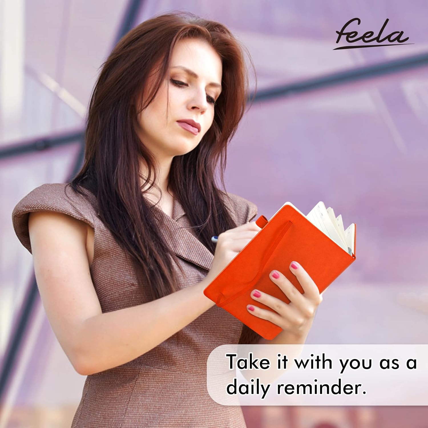5 Pack Journal Notebook Bulk for School, Feela Hardcover Business Notebooks Classic Ruled Lined Journals with Pen Holder for Work Note Taking, with 5 Black Pens, 120 GSM, 5.1”x8.3”, A5, Orange