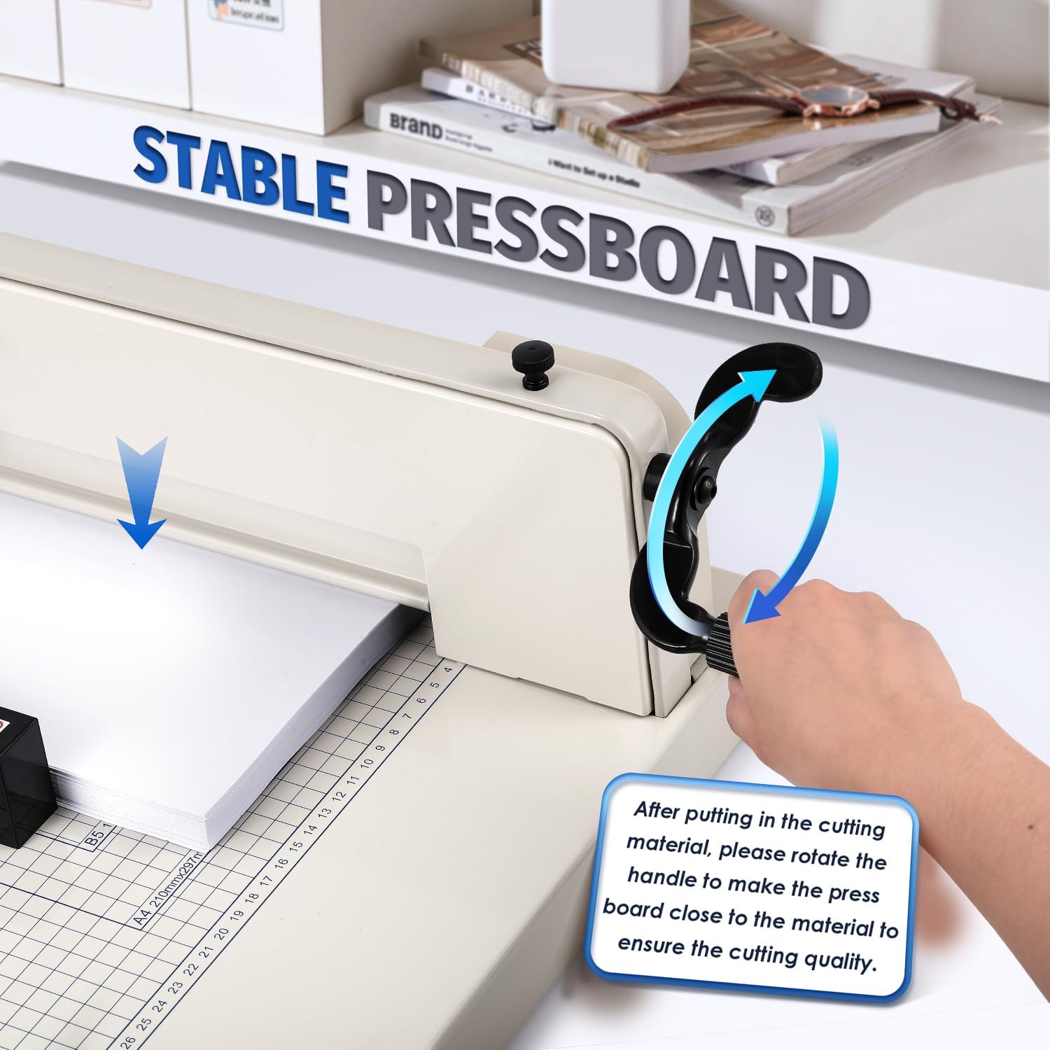 - Wide Application: It is suitable for people who deal with hundreds of sheets of paper, and besides of paper, it can also cut soft PVC, leather, non-woven fabric, bubble film, fabric pearl cotton and etc, is a very powerful paper cutter.