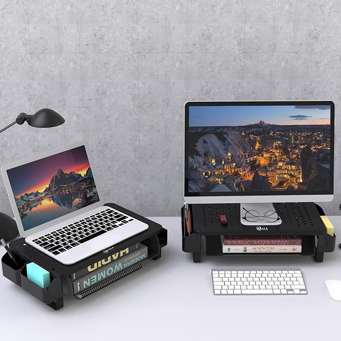 - Ergonomic: Raise computer, monitor, notebook, or any device by 4.3 inches off the desk for ergonomic viewing and sitting position, which helps reduce stress on the neck and back