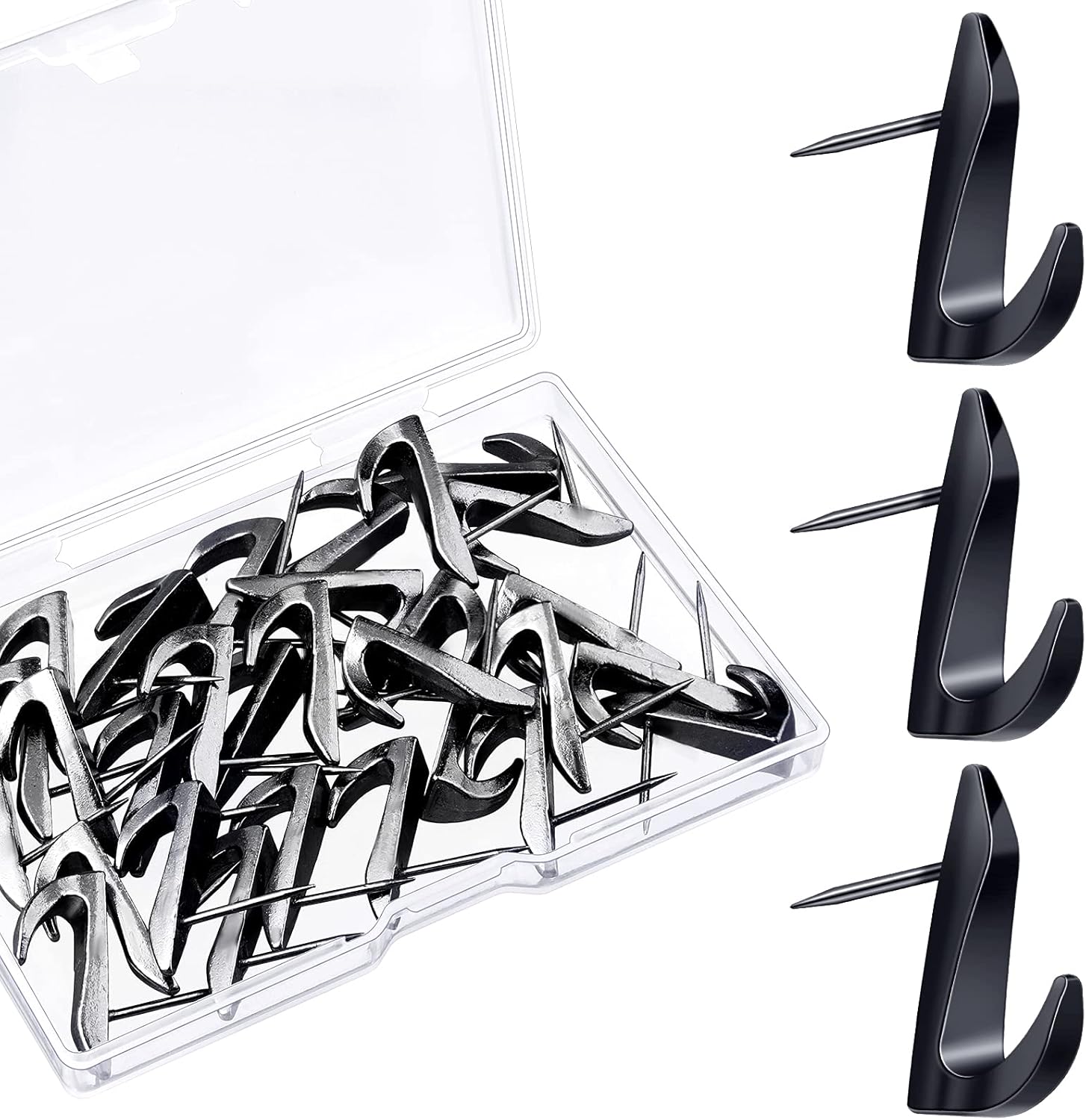 Ferraycle 30 Pieces Metal Push Pin Hangers 20 lbs Picture Hooks Zinc Alloy Thumb Tacks Hanging Hooks with Nails for Home Office Fabric Wall Wooden Board (Black)