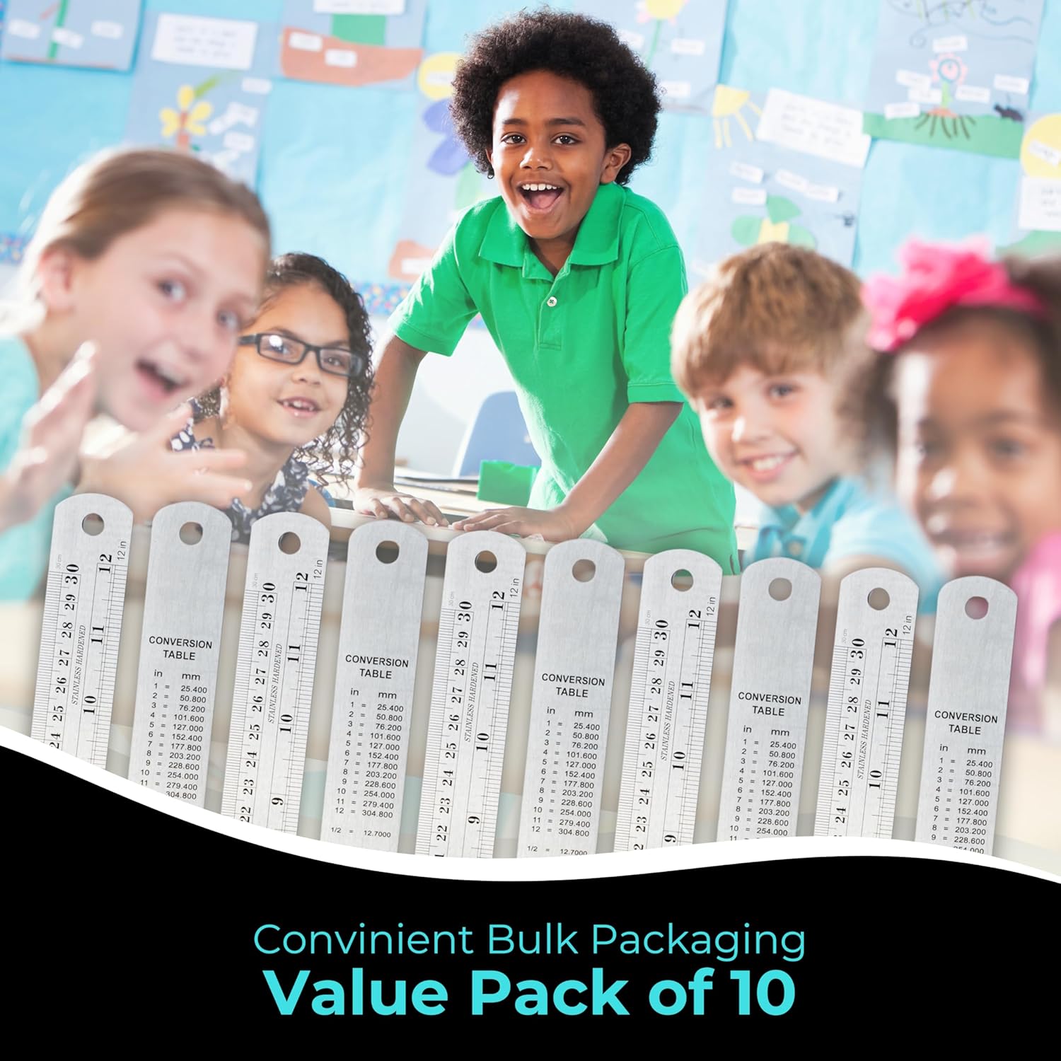 - Superb Value For Money - The set includes 10 professional grade 12 inch / 30cm stainless steel rulers with centimeters and inches. This bulk pack is suitable for crafting, drafting and architectural projects, and woodworking.