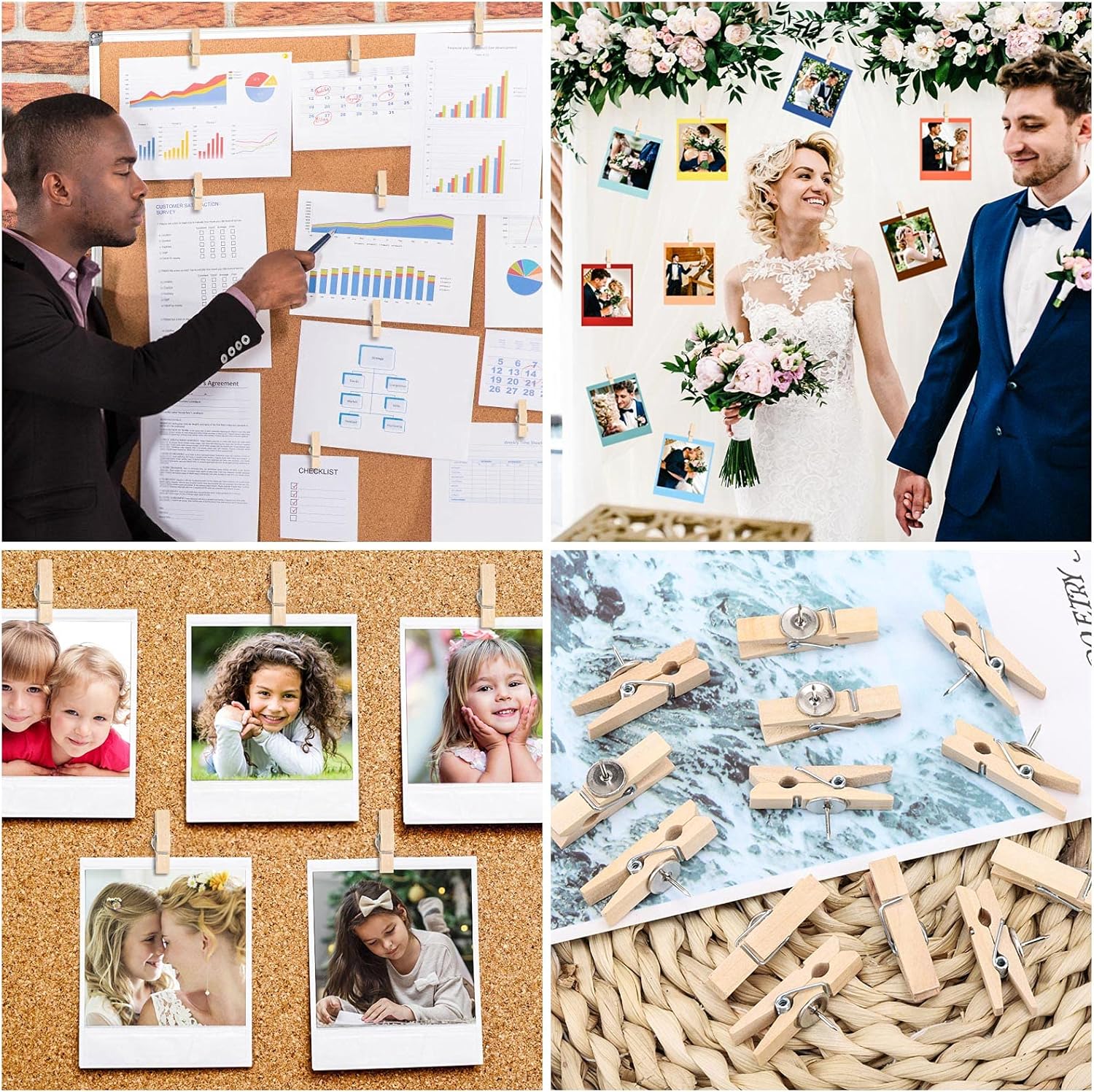 100Pcs Push Pin with Wooden Clips Tacks for Cork Board Artwork for Bulletin Board Crafts Arts Projects Photo Supplies(Wood Color)