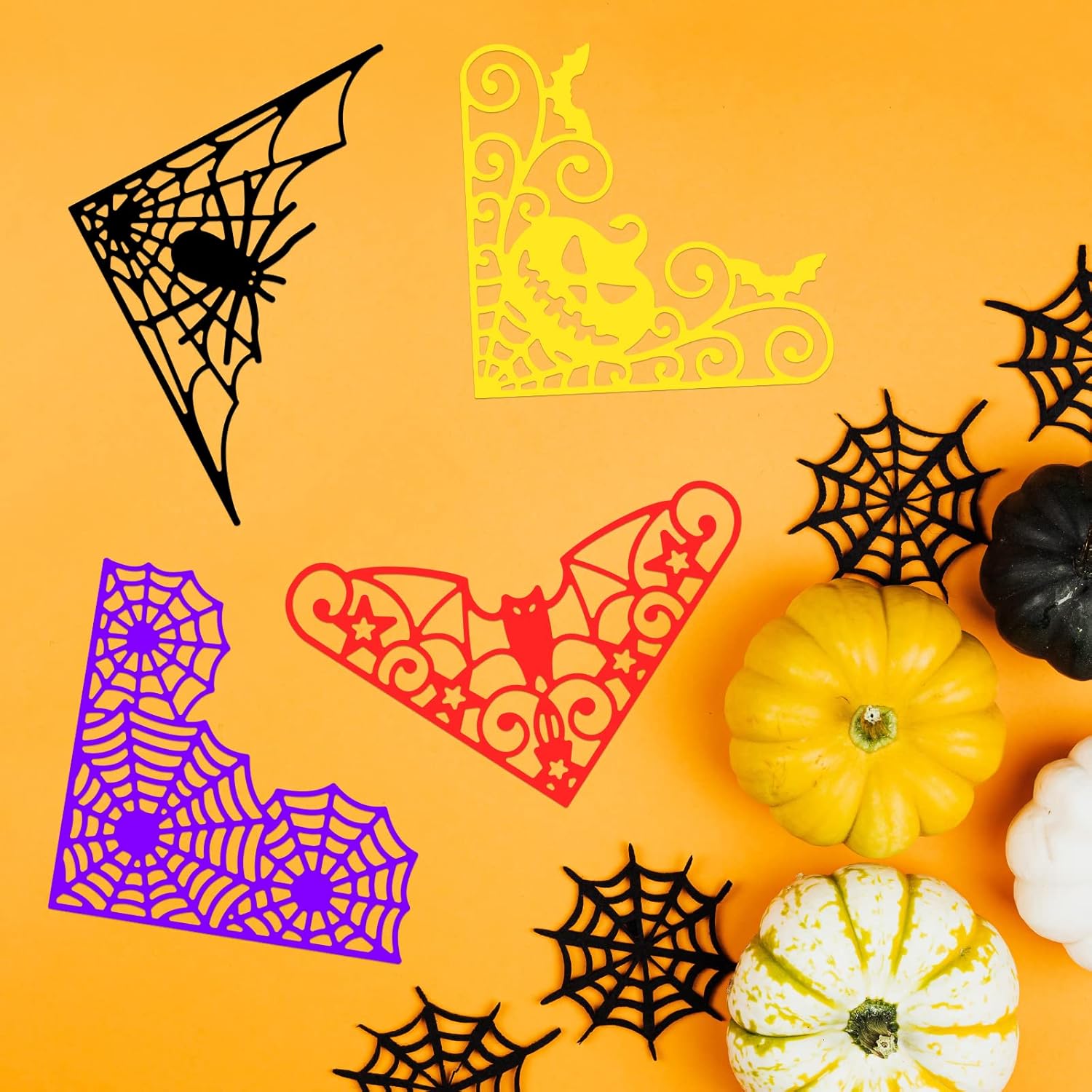 GLOBLELAND Halloween Lace Corner Cutting Dies for Card Making Spider Bat Pumpkin Cobweb Cut Die for DIY Scrapbooking Journal Embossing Paper Craft Decor