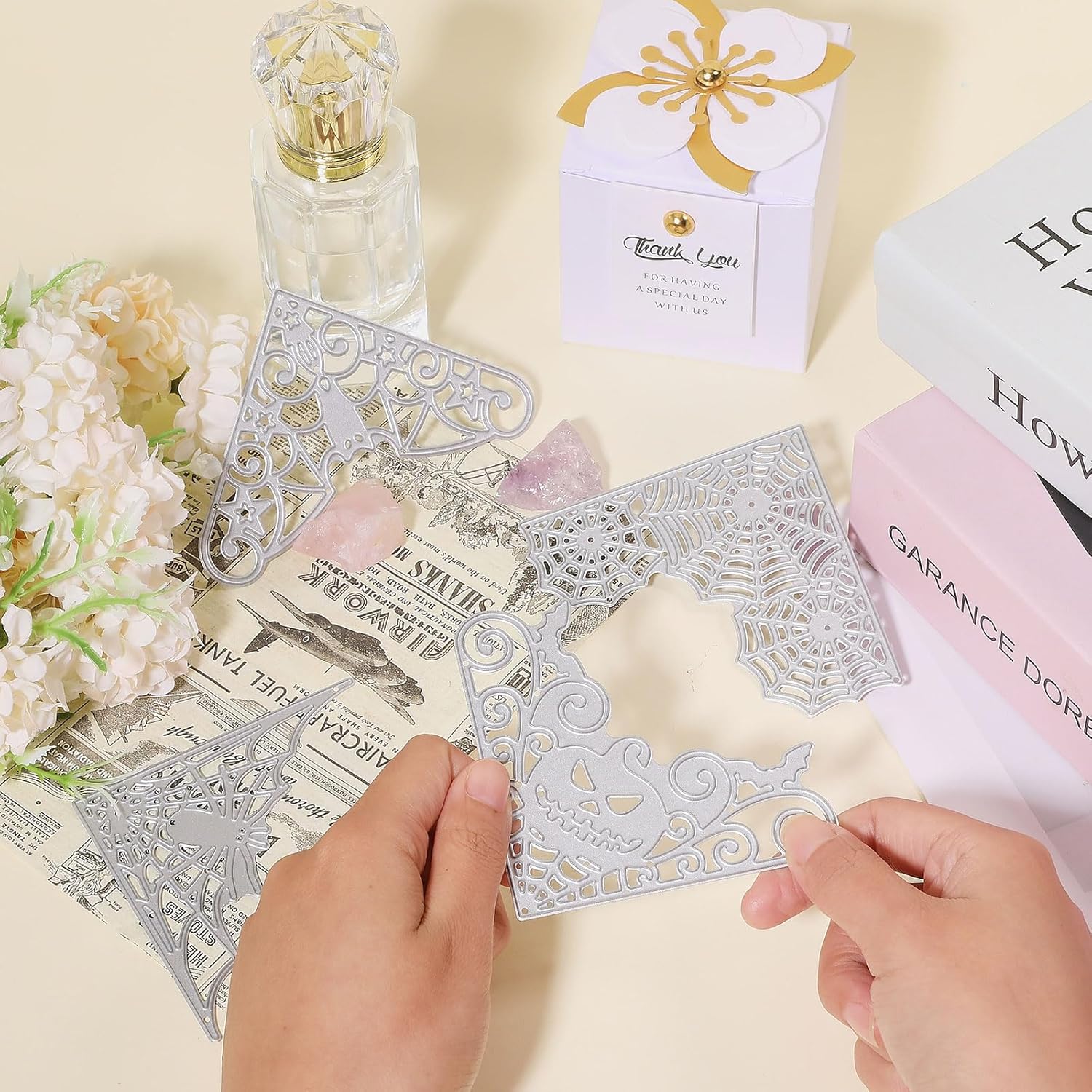 - Halloween Lace Corner Theme: The cut dies are designed with spider bat pumpkin corner patterns, you can use these cut dies to make unique card holder, multiple styles of die cuts can meet your DIY requirements