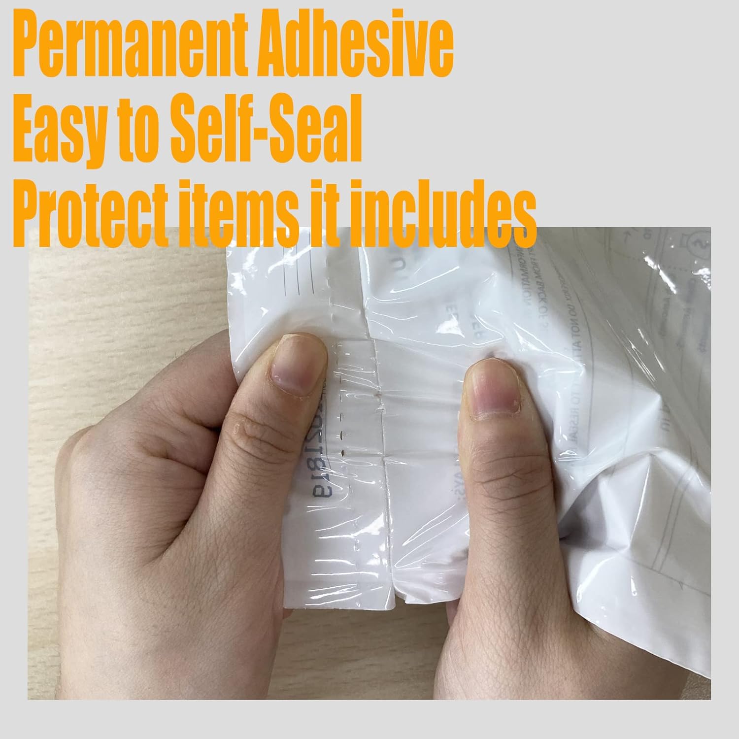 - Color: White. Self-sealing adhesive with tamper indicating graphics.