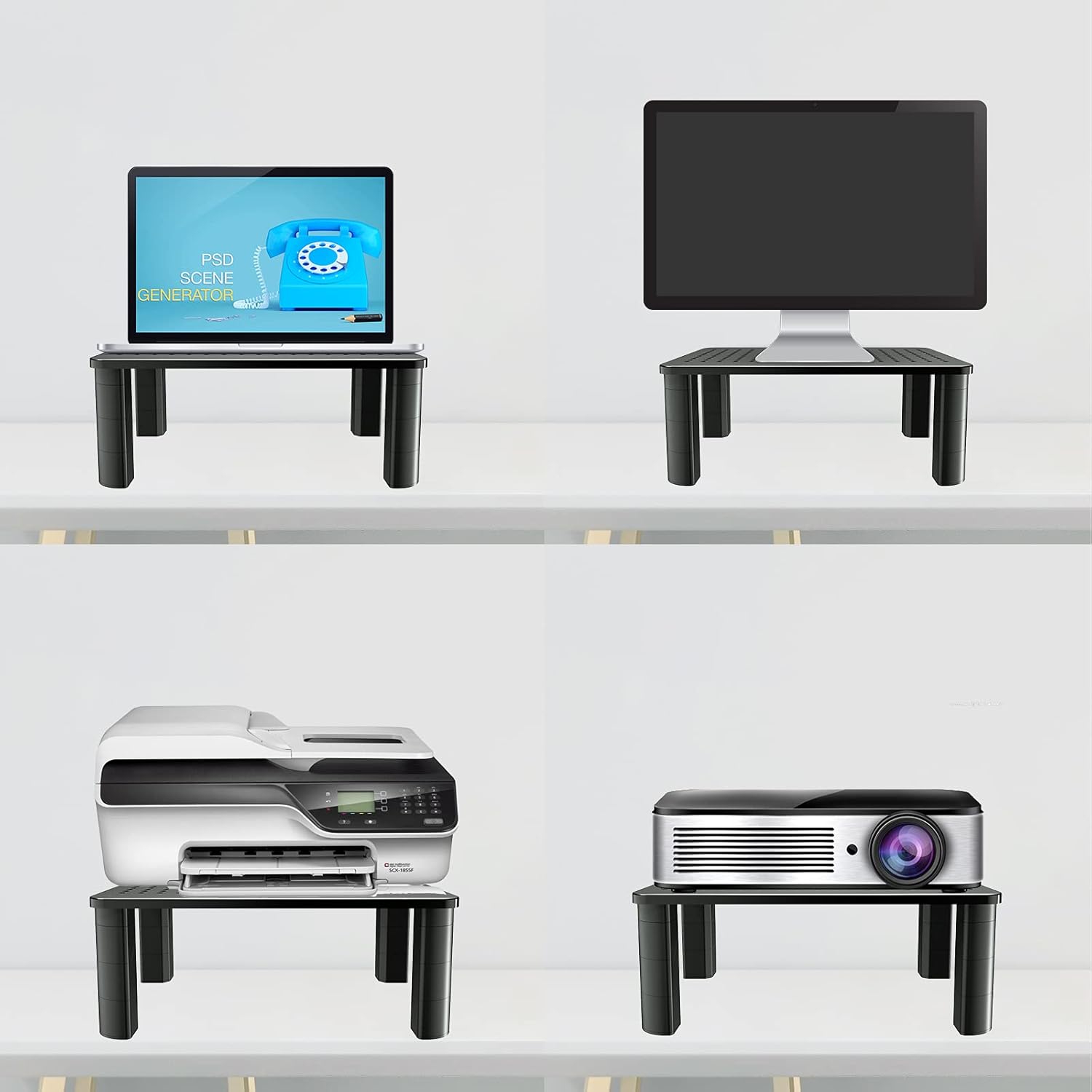 - Space utilization and aesthetic integration: The appearance adopts a fashionable modern black design style, which can be coordinated with various types of tables in both home and office environments. In addition to enhancing the user experience of the device, the monitor riser cleverly utilizes space by adding additional storage space below and on both sides of the monitor, improving the organization and functionality of the desktop.