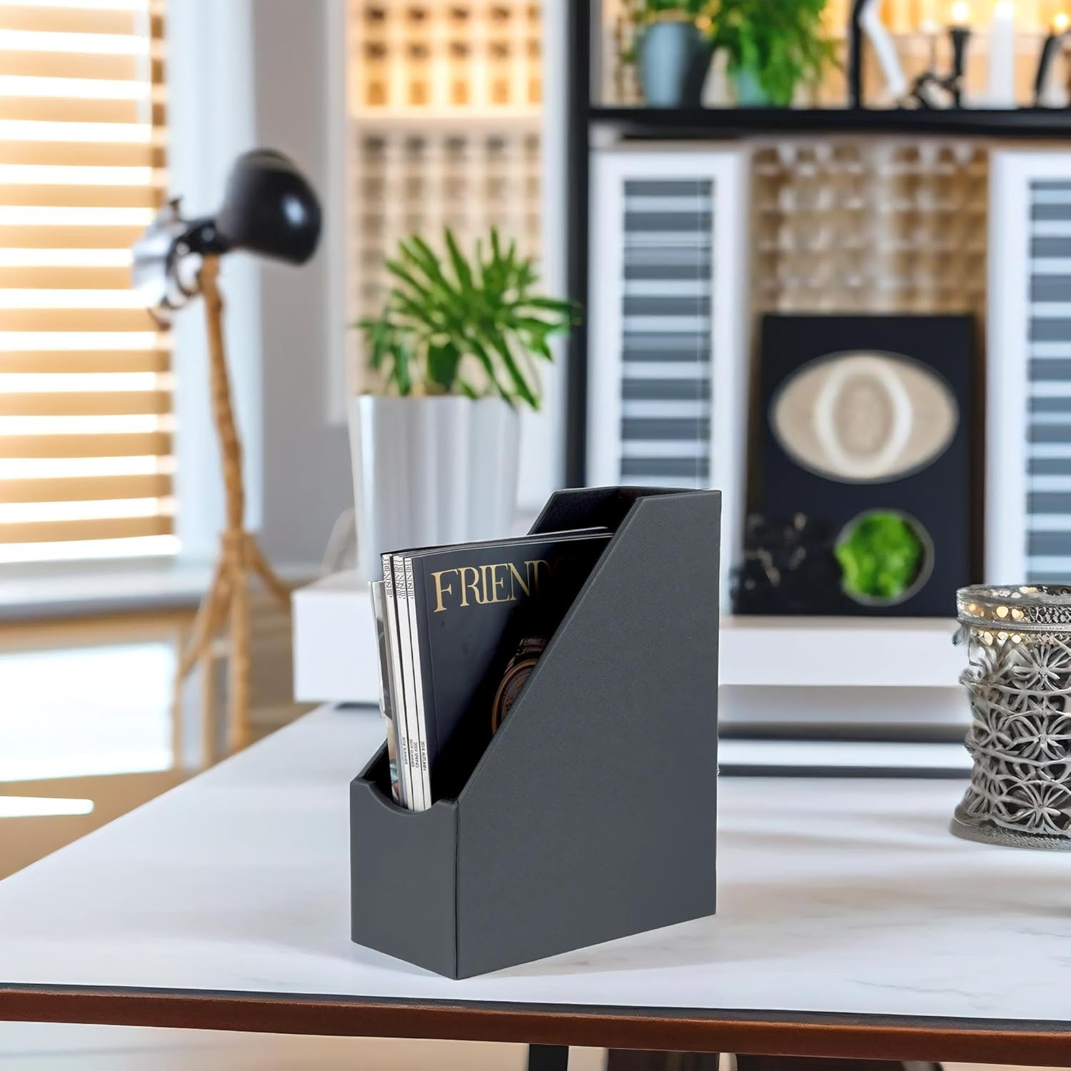 UnionBasic Magazine File Holder, Leatherette Desktop Document Organizer, Home Office Paper Holder File Storage Literature Sorter, Grey