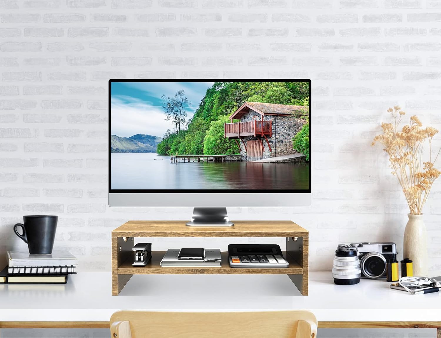- Save Your Space: Get rid of the messy desks! 2-Tier monitor risers provide more storage space to keep your workstation organized and tidy. It can store many office supplies such as books, notebooks, earphones, power banks, paper, etc.