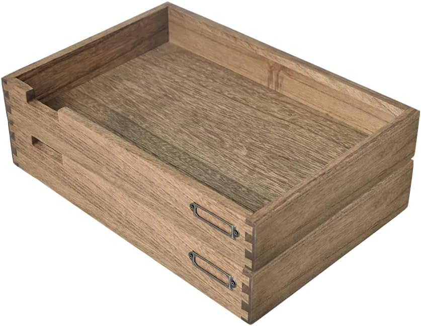 - [STACKABLE]: This paper sorter of wooden desk organizer set not only looks great, but itβs simple and easy to use as teacher desk dΓ©cor or industrial dresser.You can use the two wood trays separately as letter trays or you can just stack them together and they are ready to use for stackable desk trays as a file organizer!