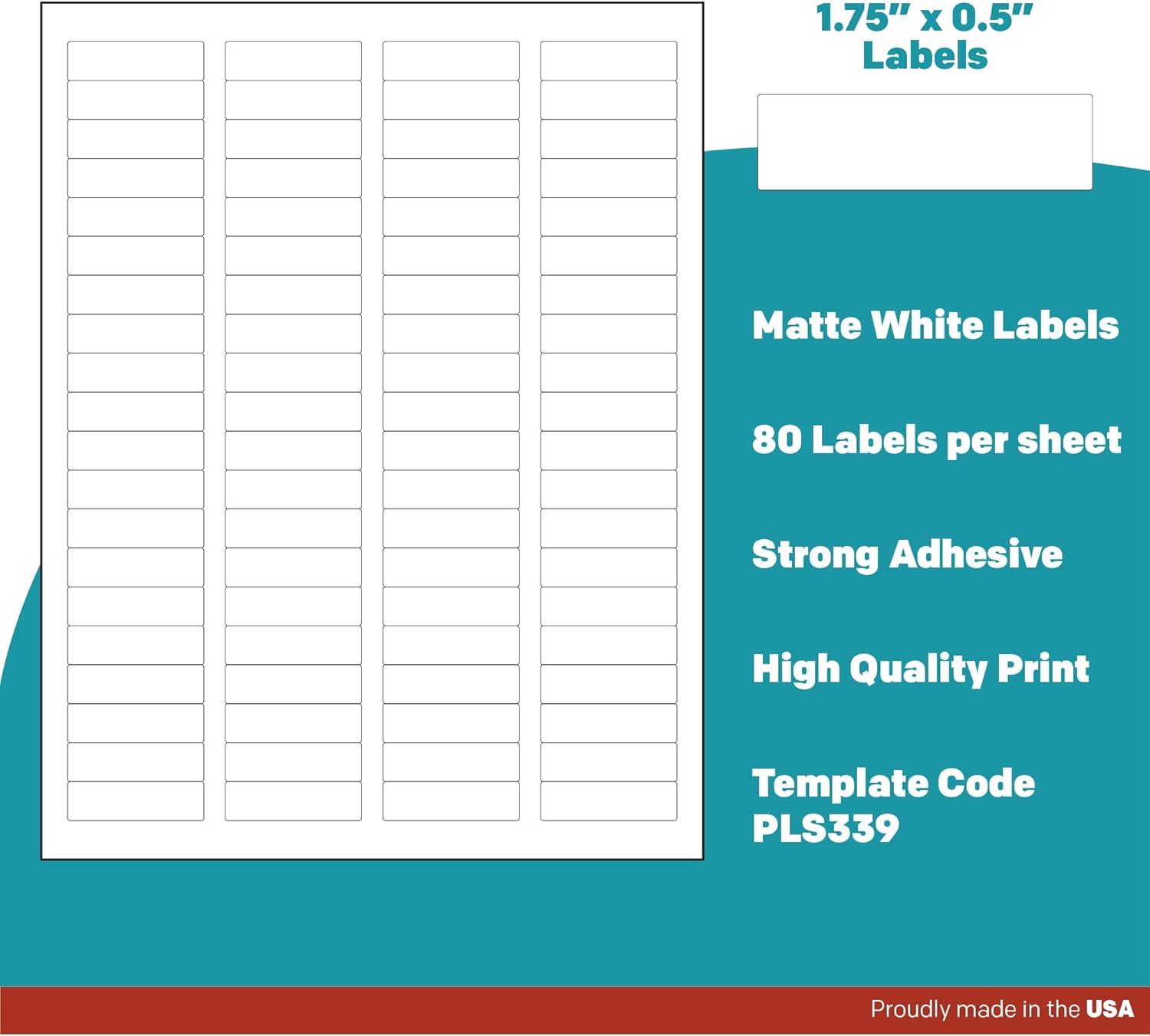 Premium Label Supply White Sticker Return Address Labels – 1.75" x .5" – Laser/Inkjet Compatible – (80 per Sheet), 500 Sheets – 40,000 Total Adhesive Labels