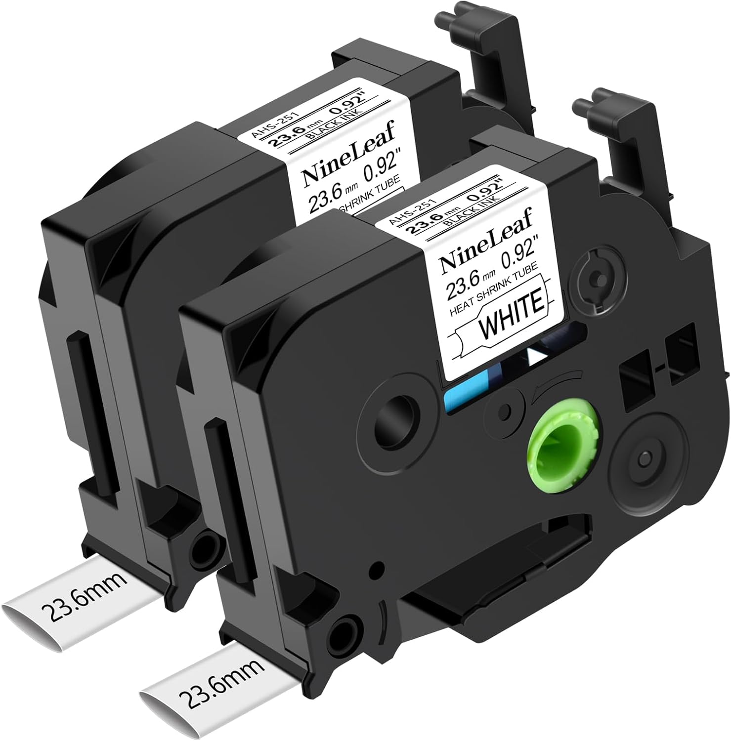 NineLeaf 2 Pack Compatible Label Tape Replacement for Brother P-Touch Black on White 23.6mm 0.92'' HSe-251 HSe251 HS-251 HS251 Heat Shrink Tubes Work for Ptouch PT-D800W D600 P710BT P750W P900W