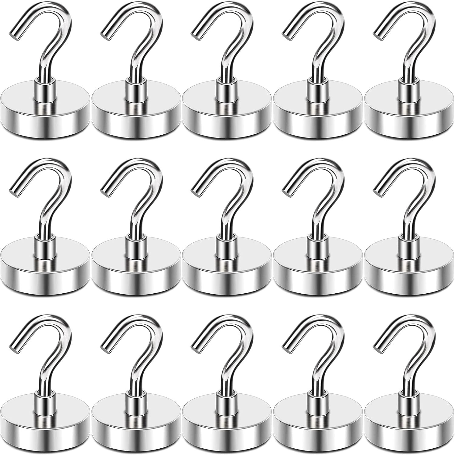 MIKEDE Strong Magnetic Hooks Cruise Essentials Heavy Duty for Hanging, 28Lb+ Neodymium Magnets with Hooks for Refrigerator, Magnetic Hanger for Kitchen, Home, Workplace-15Pcs