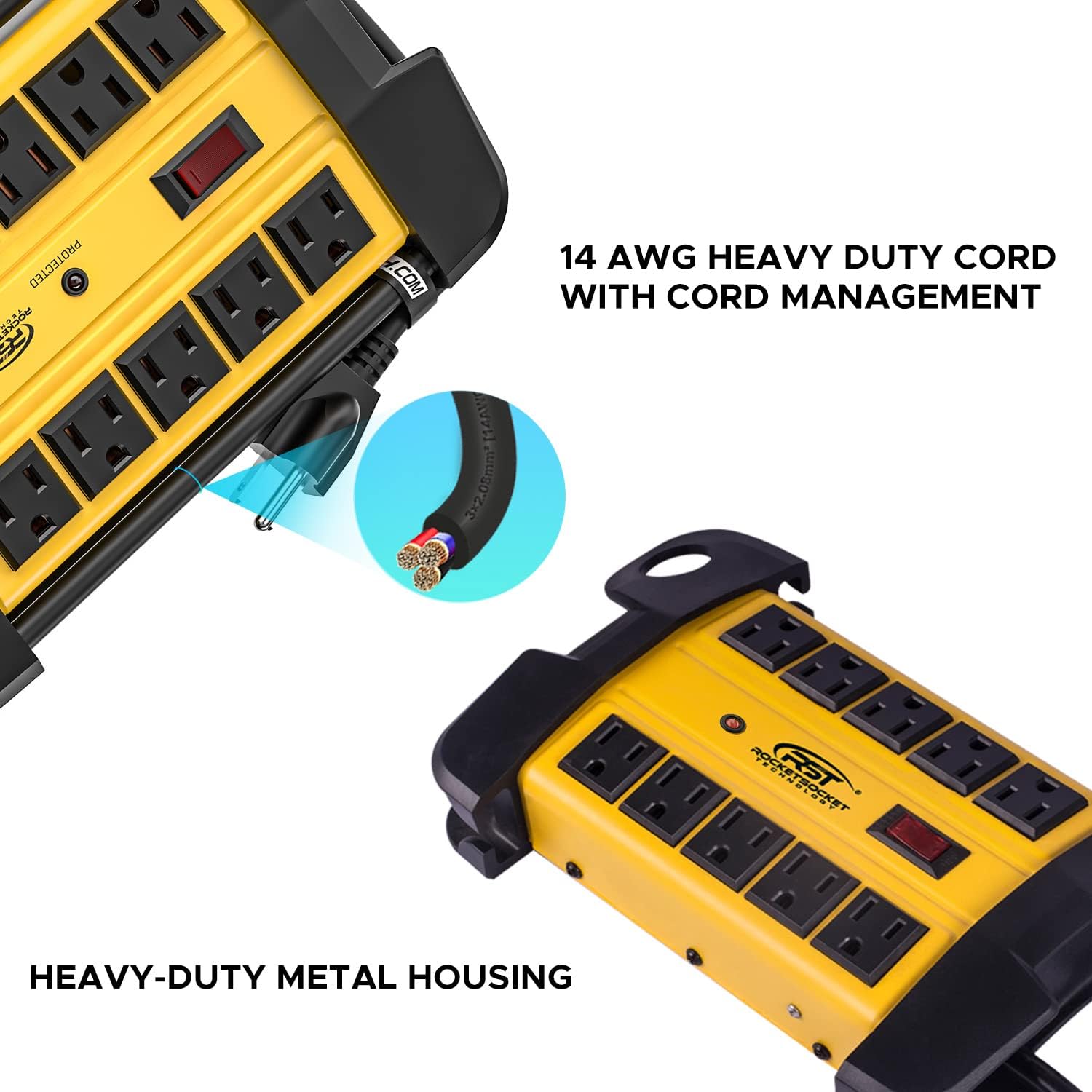 - [Super Durable, Heavy Duty Construction & Strong Extension Cord]: The metal housing and flame-retardant reinforced soft plastic frame make the power strip strong enough to withstand shock and heat.