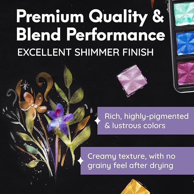 - π¨ 24 Vivid Metallic Colors - Our Komorebi Metallic Watercolor Paint Set of 24 features Vibrant colors, and each color is selected by a team of Professional artists very carefully. These Watercolors are infused with shinning pigment to provide a unique liquid-metal finish.