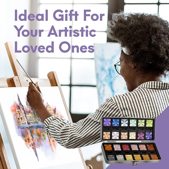 - π¨ Portable - This shimmery premium painting set comes with 24 different colors in a portable metal box. These colors are suitable for beginners as well as advanced level artists of various watercolor painting.