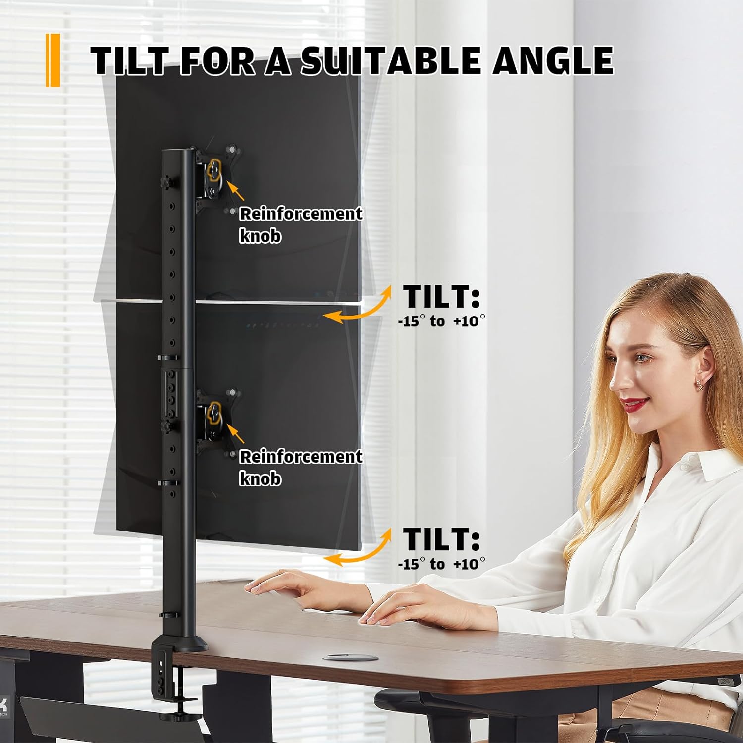 HEMUDU Dual Monitor Articulating Desk Mount Arm Stand - Vertical Stack Screen Supports Two 13 to 34 Inch Computer Monitors with C Clamp