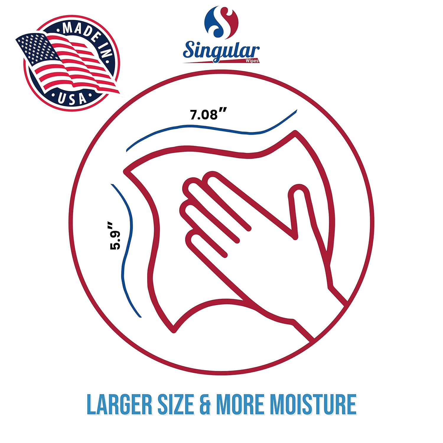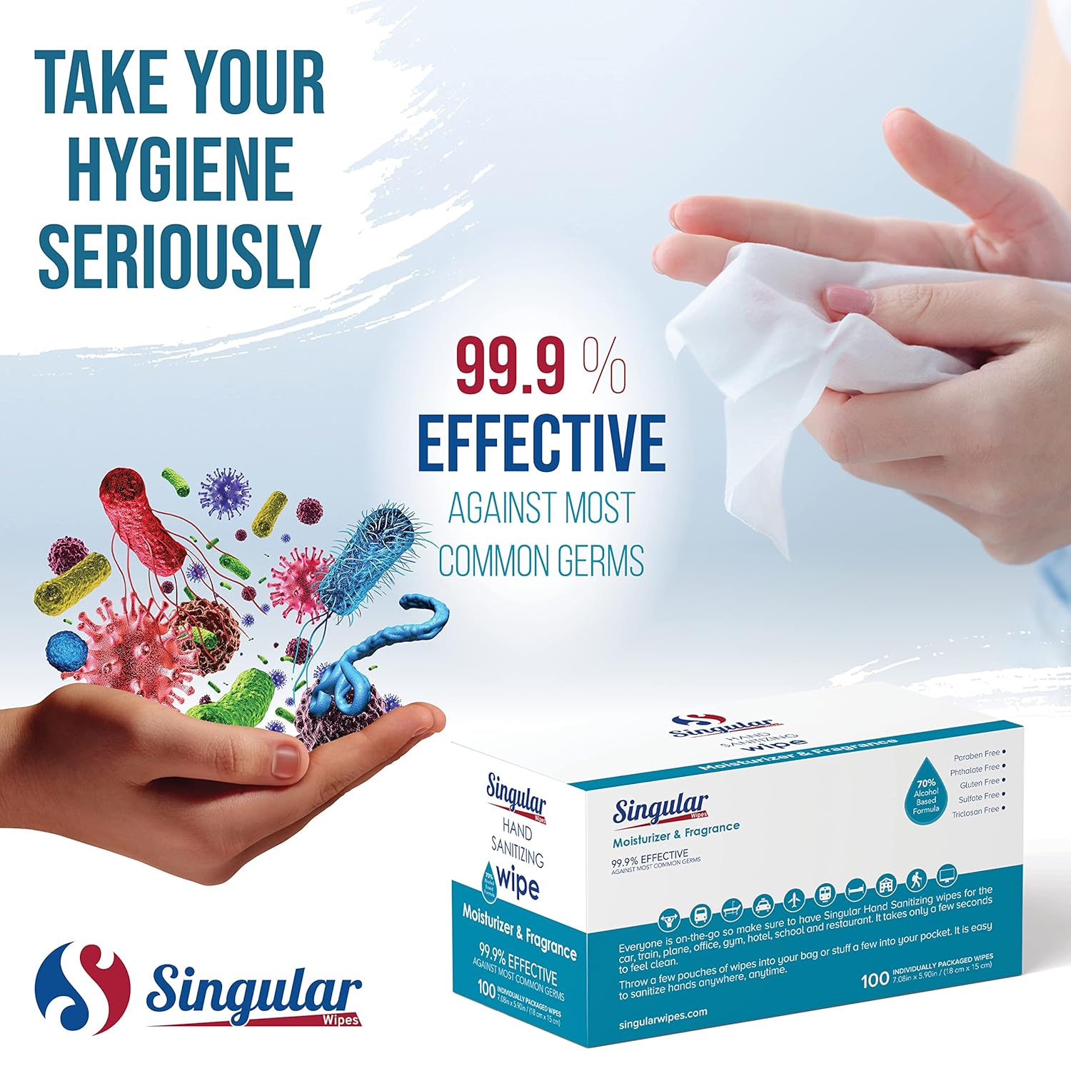 Hand Sanitizing Wipes Travel Size by Singular Wipes – 100ct Individually Wrapped | Fresh Citrus Scent, Moisturizing, 70% Alcohol Wipes | Travel, Office, School, Home | Made in USA