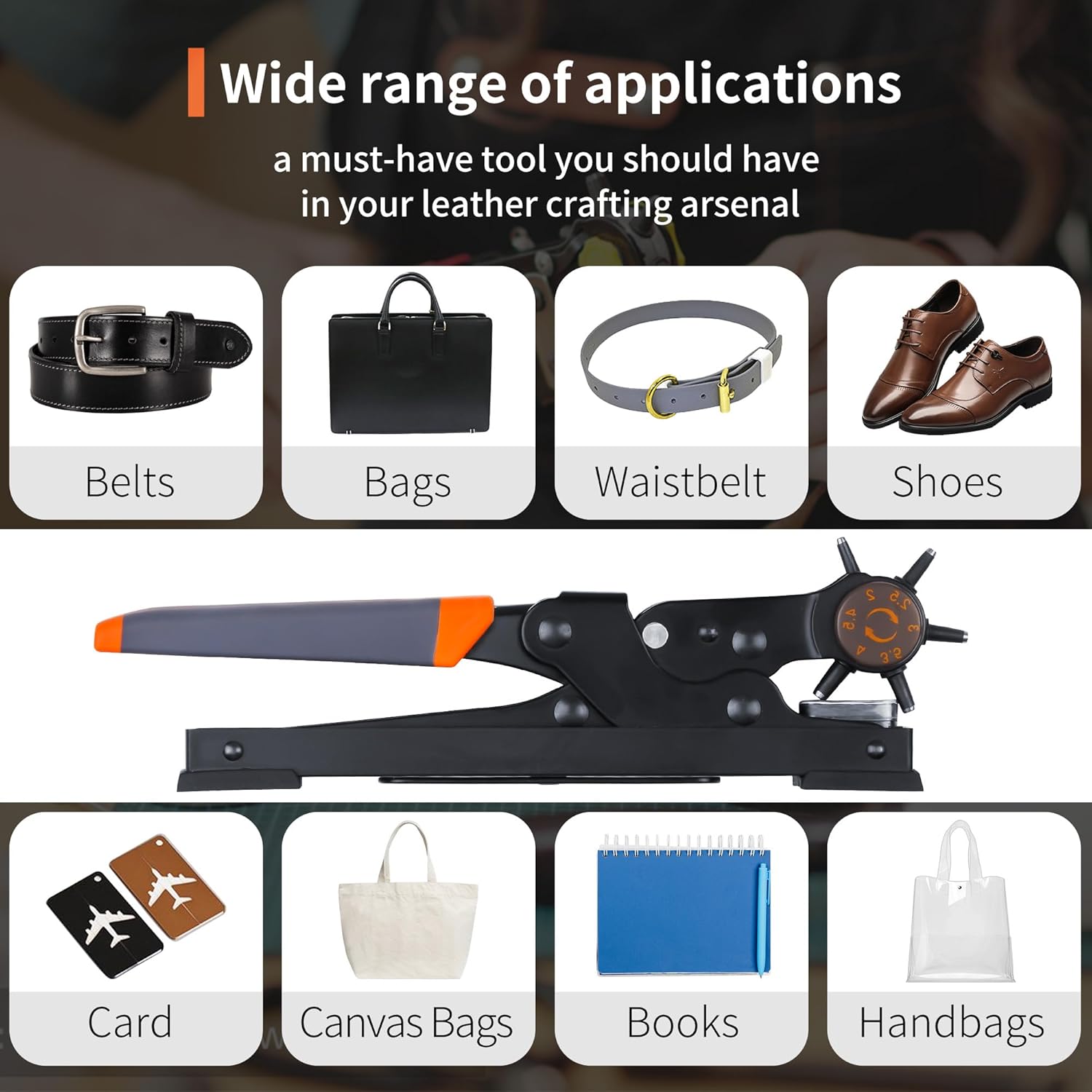 - 【Multi-function】 Ideal for use on a variety of surfaces. It is an awesome tool. The punch plier is commonly used for punching round holes in leather, belts, plastic, rubber, canvas, fabric, cardboard, saddles, and similar materials; especially useful as a leather hole punch.