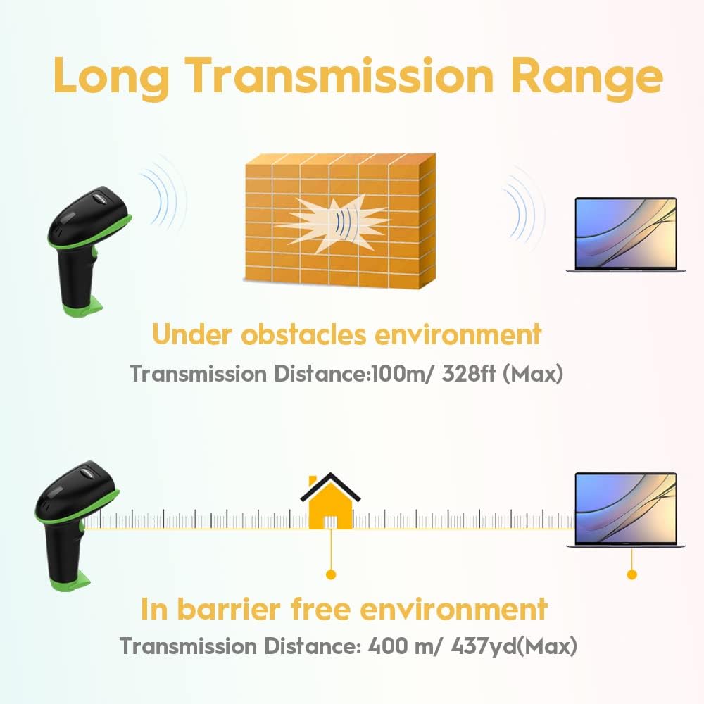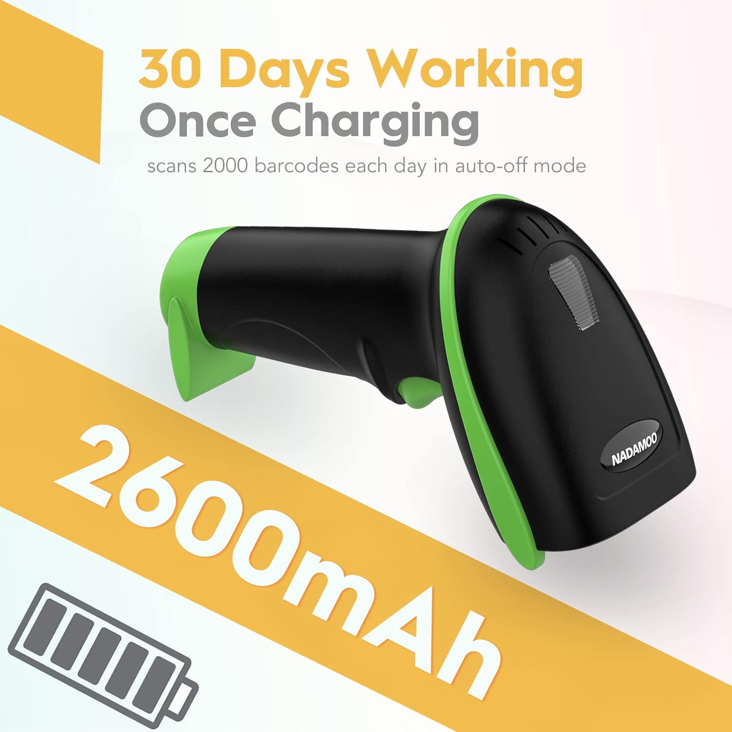 NADAMOO Wireless Barcode Scanner 328 Feet Transmission Distance USB Cordless 1D Laser Automatic Barcode Reader Handhold Bar Code Scanner with USB Receiver for Store, Supermarket, Warehouse - Green