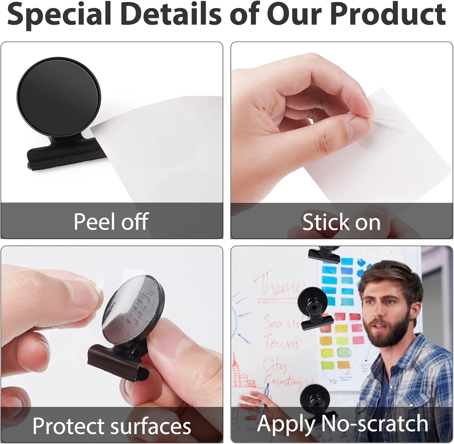 - Magnetic wall clips are ideal for the home, kitchen, office, school, or workshop, they work great on whiteboards for the office or teachers, displaying family photos, Christmas cards &artworks, holding recipes, calendars, post reminders, etc.