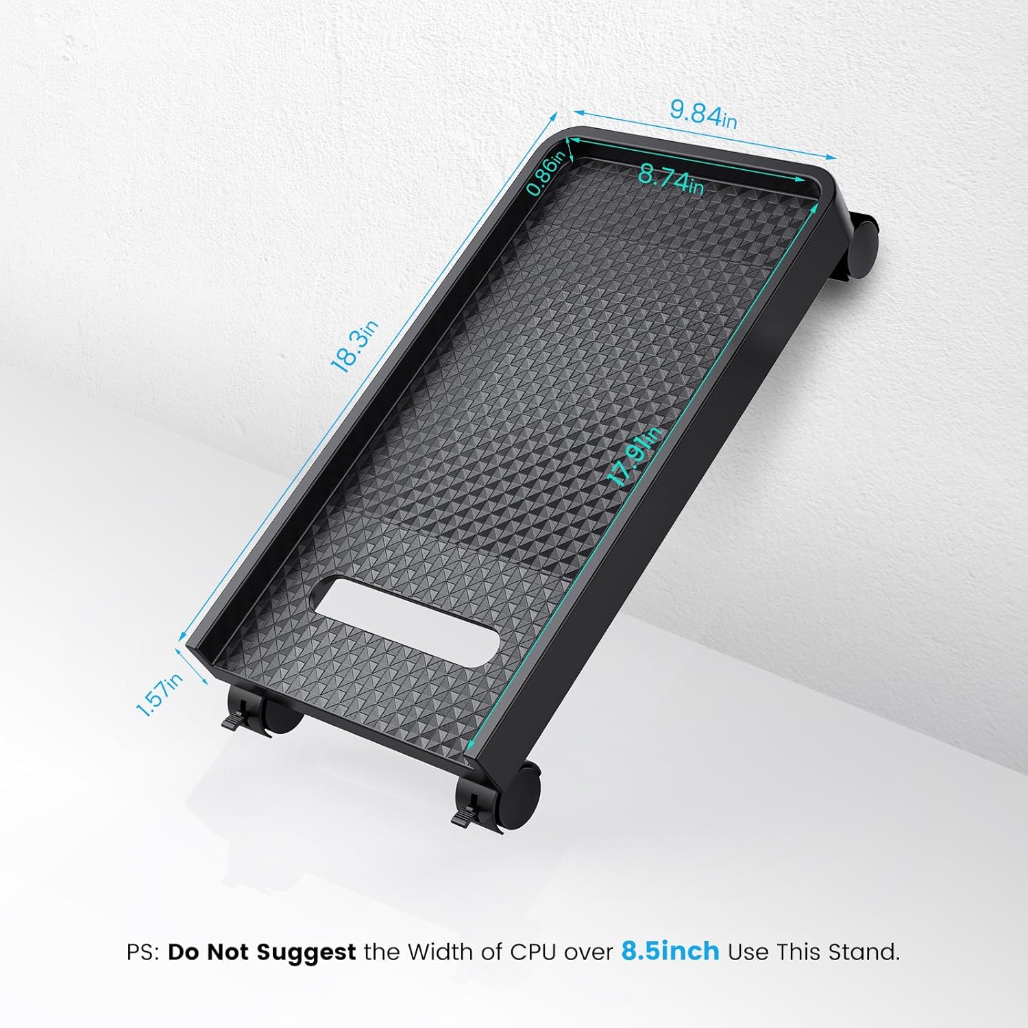 - 【3-Sided Fixed Guardrails for Safer Movement】Integrated ABS frame with 0.86" guardrails holds your CPU tower securely, helping reduce drop risks during movement. Makes desk cleaning easier and supports better airflow for longer device use