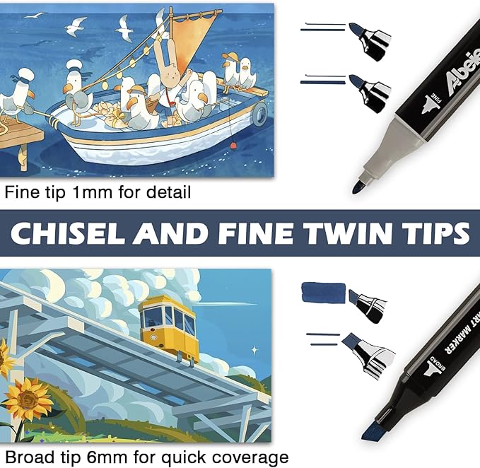 - Dual Tip Precision for Every Detail: Switch effortlessly between a 1-7mm chisel tip for bold strokes and a 0.5-2mm fine bullet tip for intricate lines. Ideal for artists, students, and hobbyists, these artist markers handle everything from adult coloring book markers designs to school posters with studio-grade control.