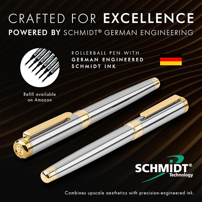 ELIZO Luxury Pen Fancy Real 24K Gold Plated Trim Chrome Silver Nice Pen Gift Rollerball Cool Best Pens Schmidt Ink EDC Pen Executive Smooth Writing Pens for Men Women