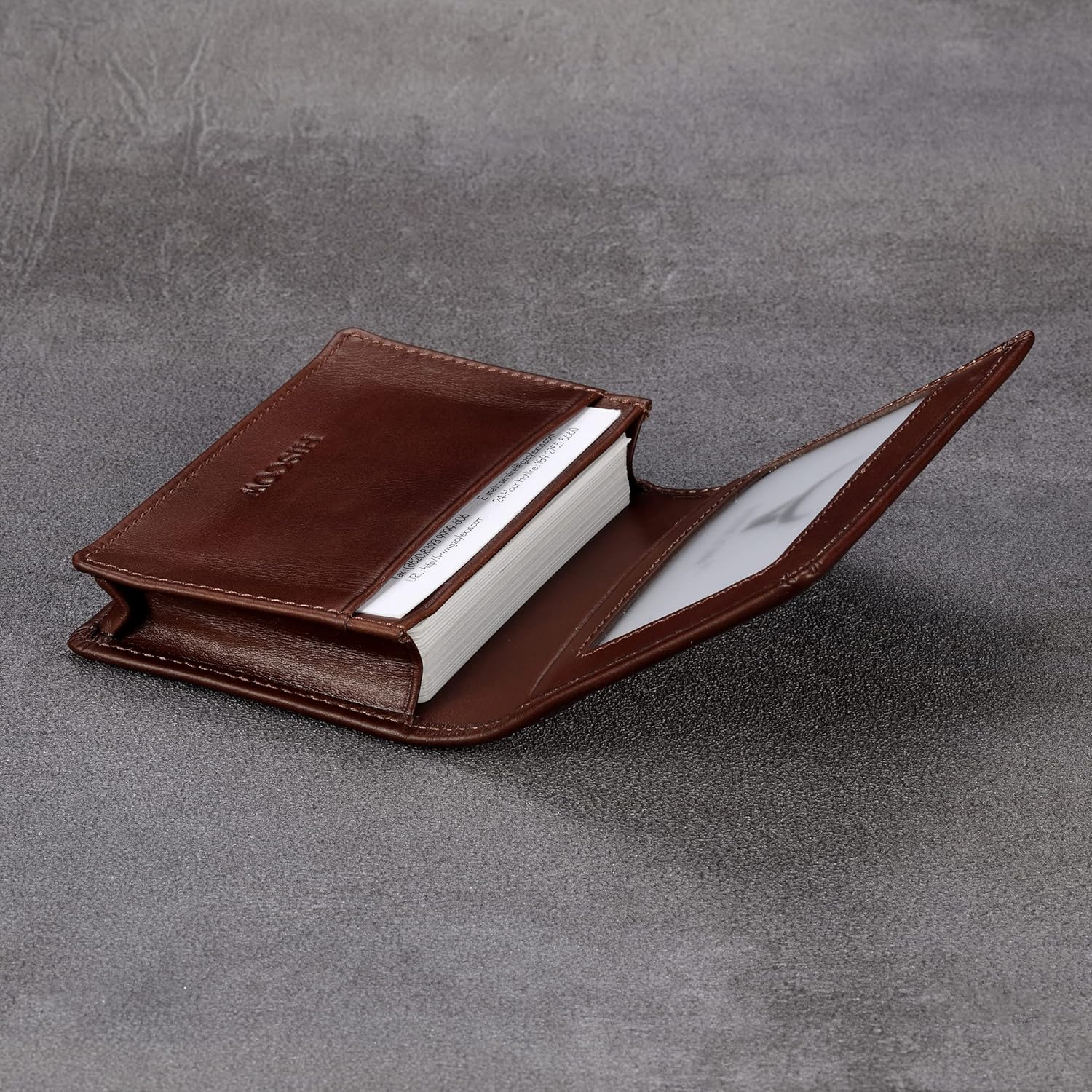 Leather Business Card Case Holder for Men & Women, Italian Calfskin