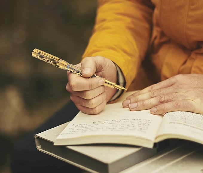 - Handcraft and Durability –- The skeleton net was made of brass and electroplated with 24K gold while the barrel made of precious clear acrylic. Each pen was hand assembled and checked for flawless quality by our professional craftsman.