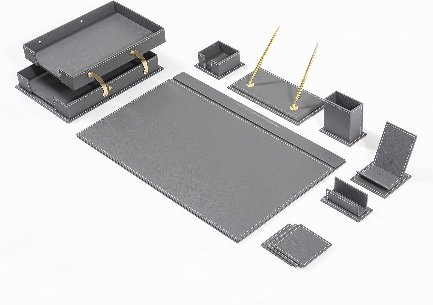 - We are offering you the opportunity to find the office accessories that you need, conceived by our finest leather artisans. Made with authentic leather and in a unique palette of colors, you will definitely add a distinct touch of class to your office dΓ©cor. Our leather office sets are also well coveted among professionals who use them in conference or meeting rooms.