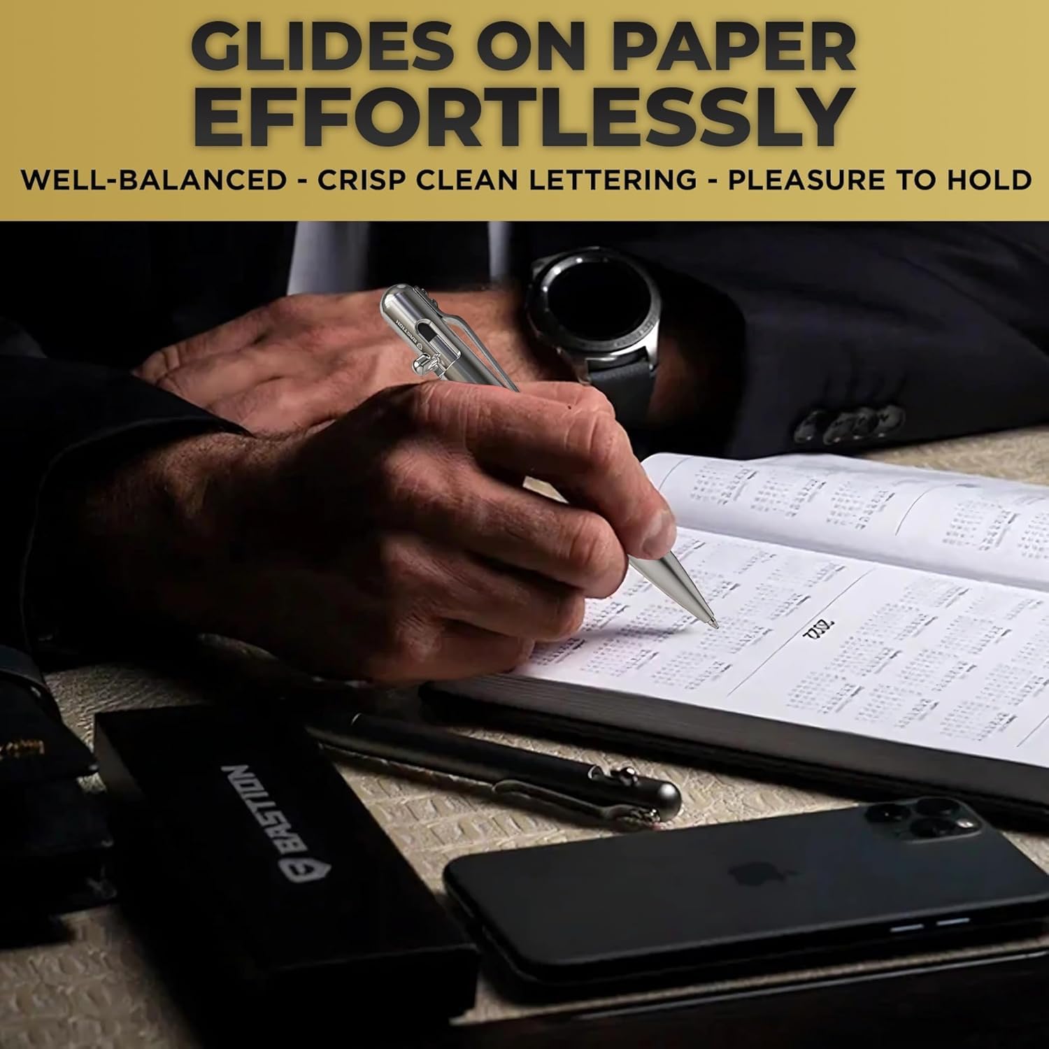 BASTION® Luxury Slim Bolt Action Pen, Durable EDC Pen with Fine Tip, Professional Ballpoint Pen for School and Work - Stainless